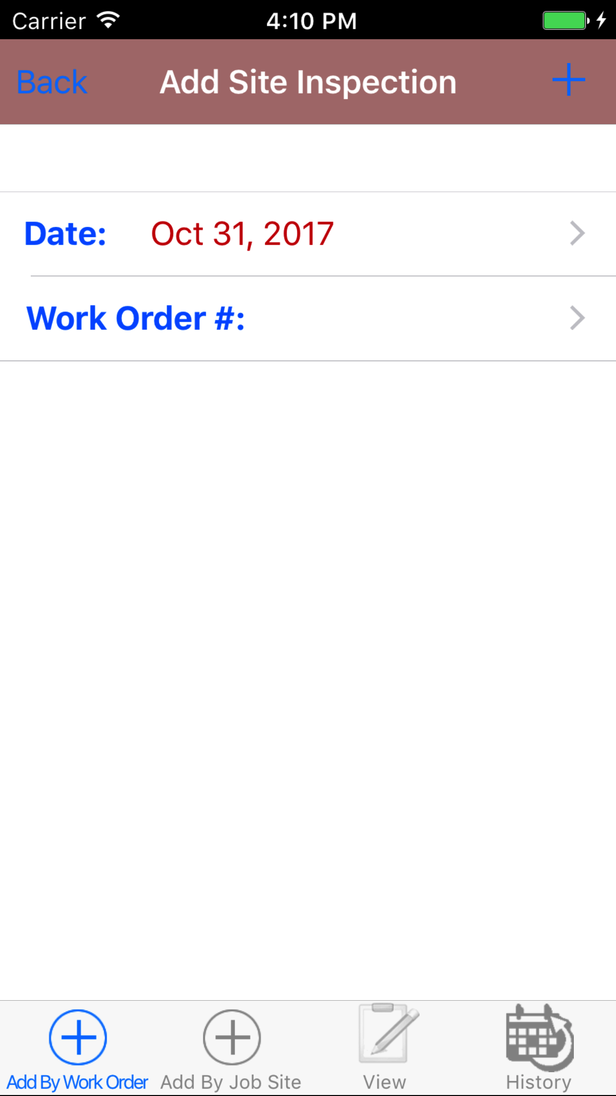 - Tap the + icon in the top right corner to add the Site Inspection.
