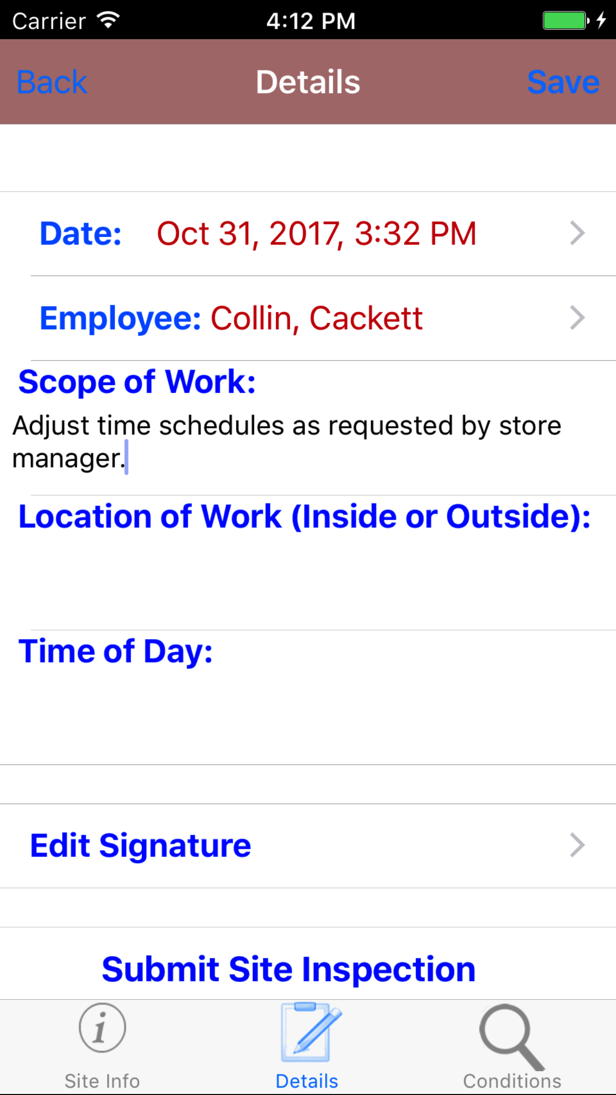 - Tap Save in the top right corner to save any changes to the Site Inspection Details.