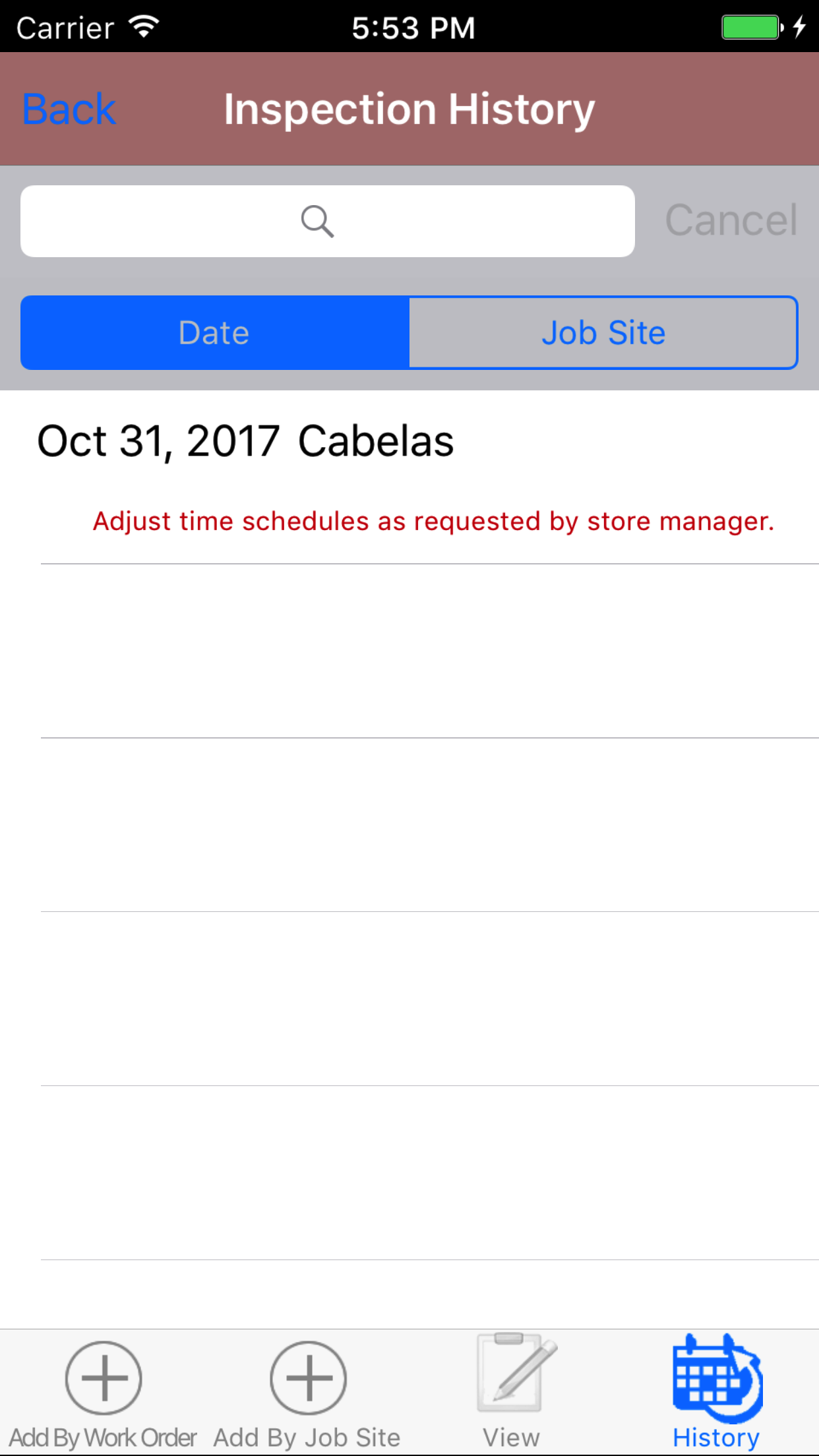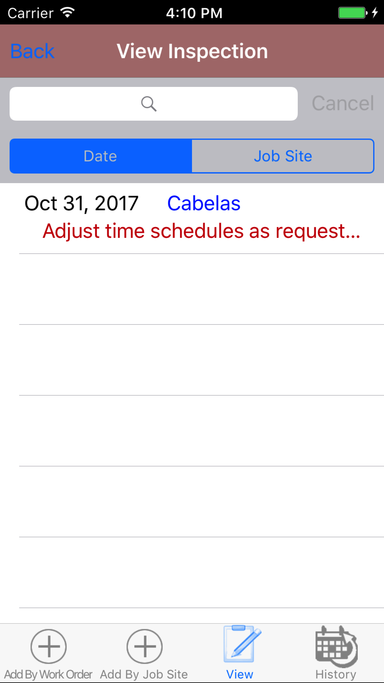 After Site Inspections have been closed out, they will be available to look at through the History view on the iPhone Application.