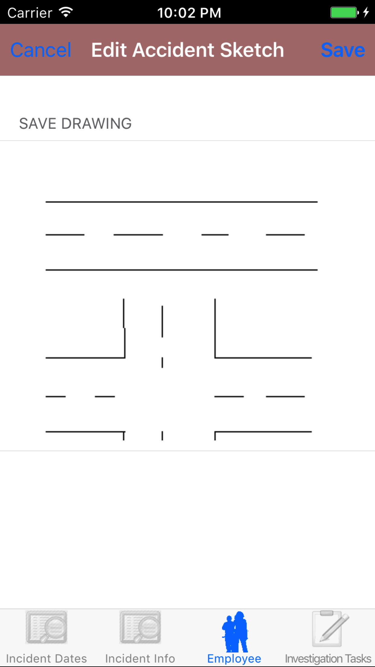 - Tap the Save button, in the top right corner. The edit accident sketch scree screen