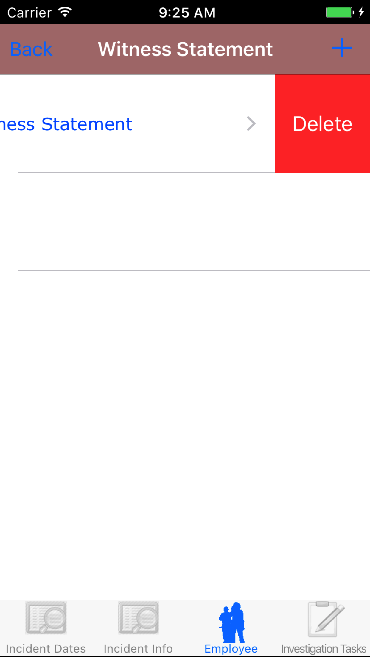 - Tap the Delete button. The witness statement will be deleted.