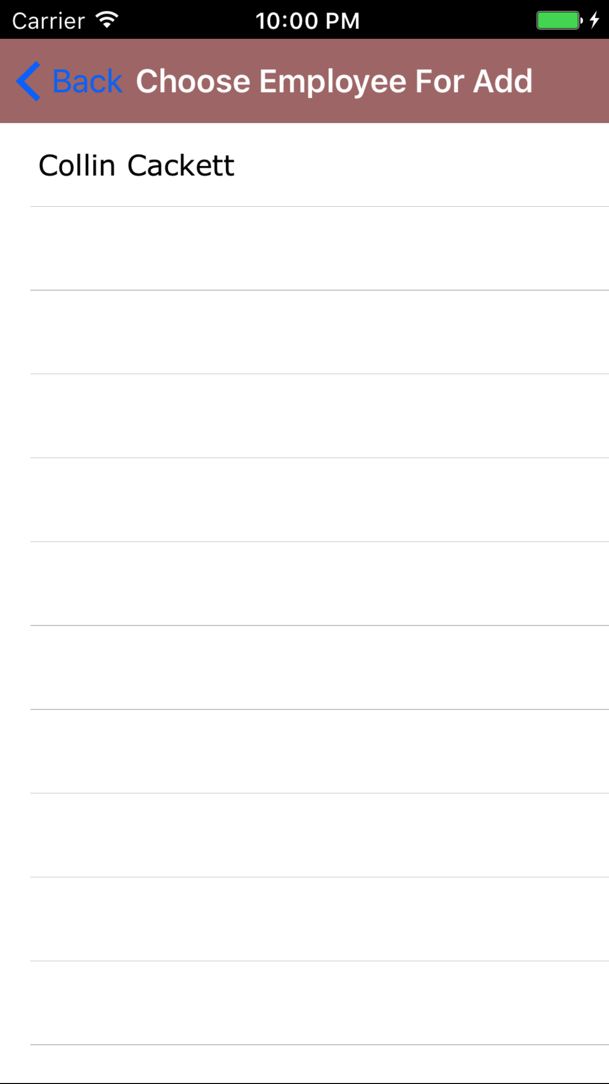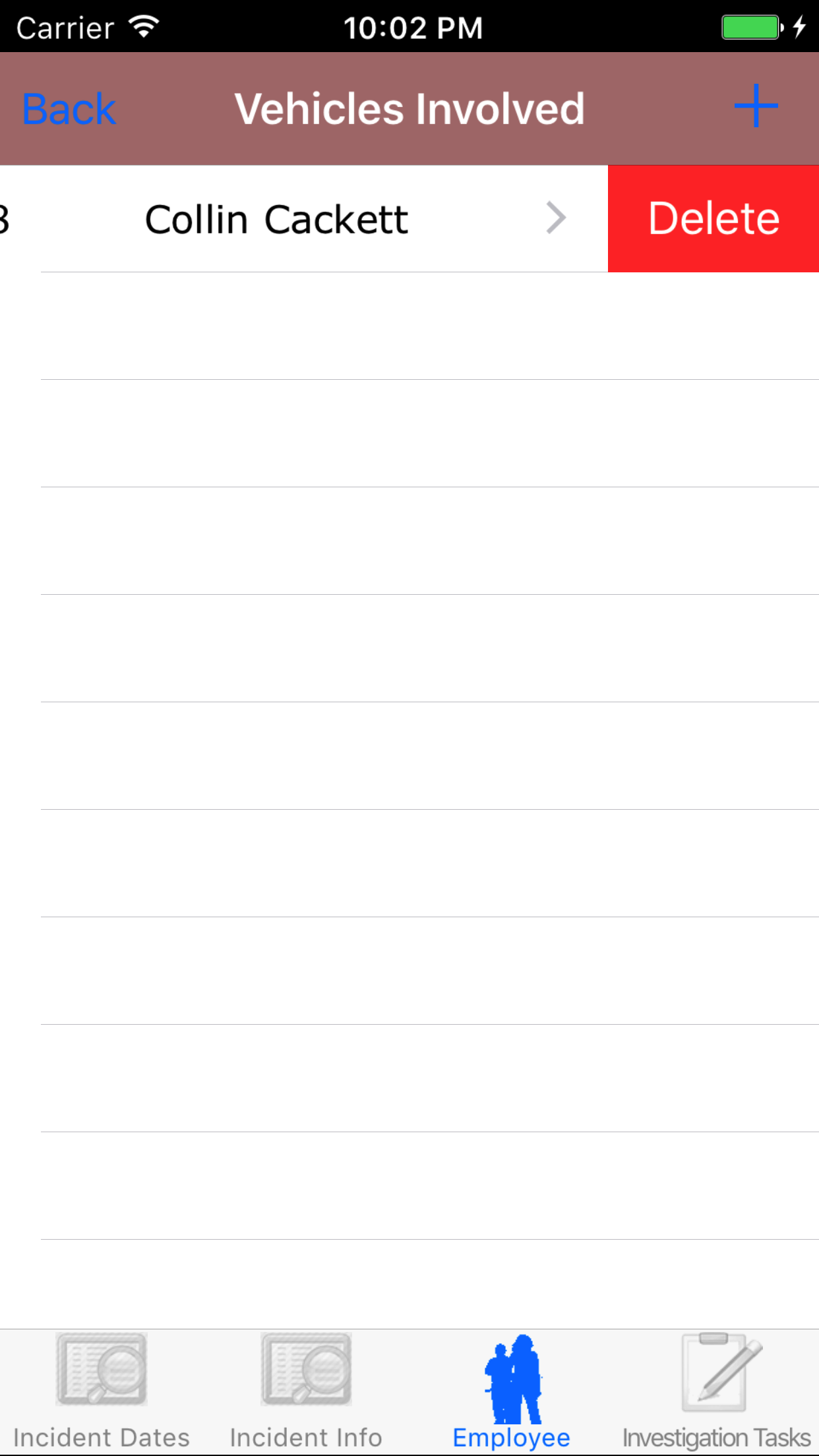 - Tap the desired employee to select it or tap Back in the top left corner to leave the Employee field unchanged and return to the Edit Vehicle Involved screen.
