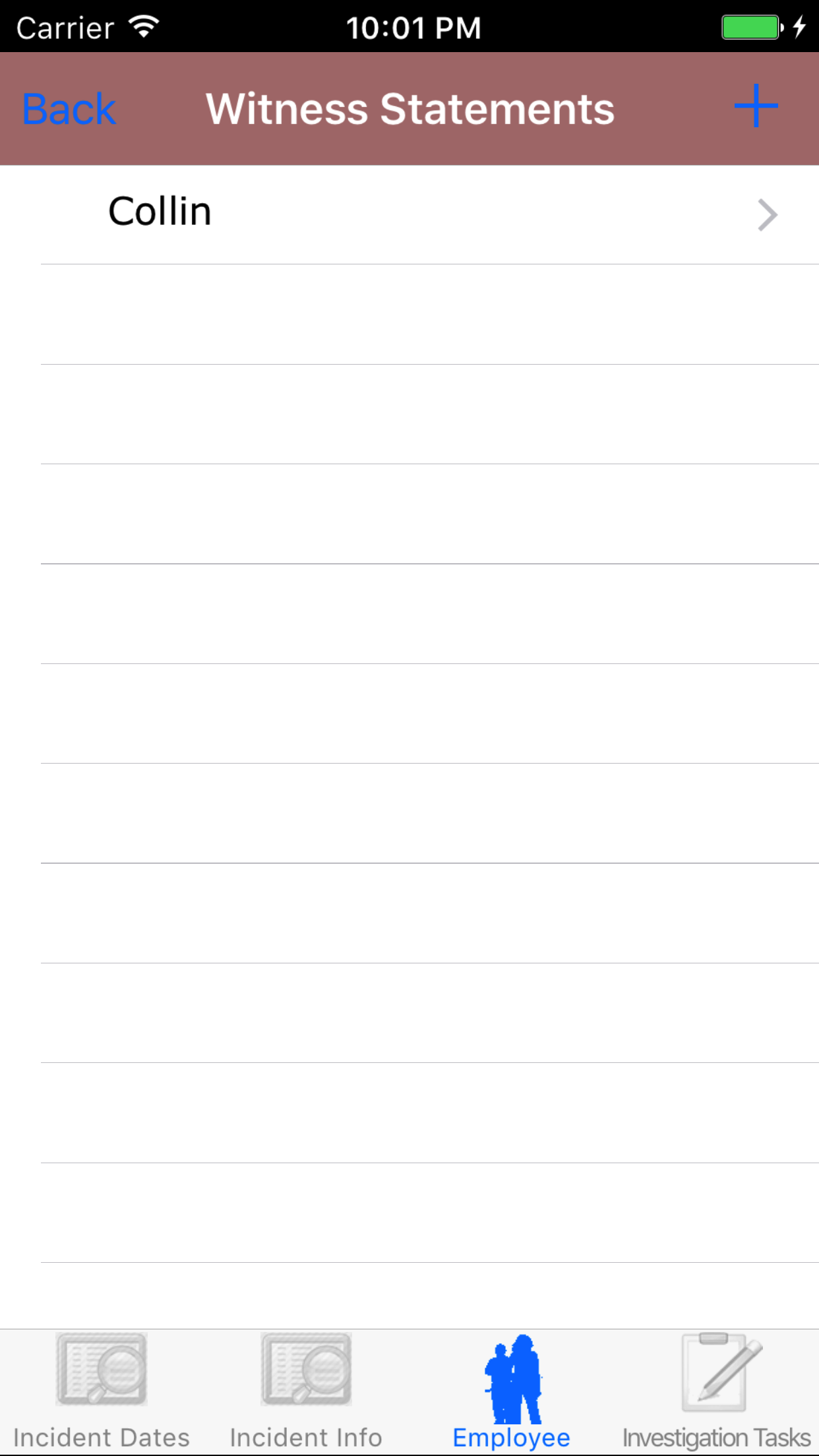 - Tap the + icon in the top right corner to load the add witness statement screen