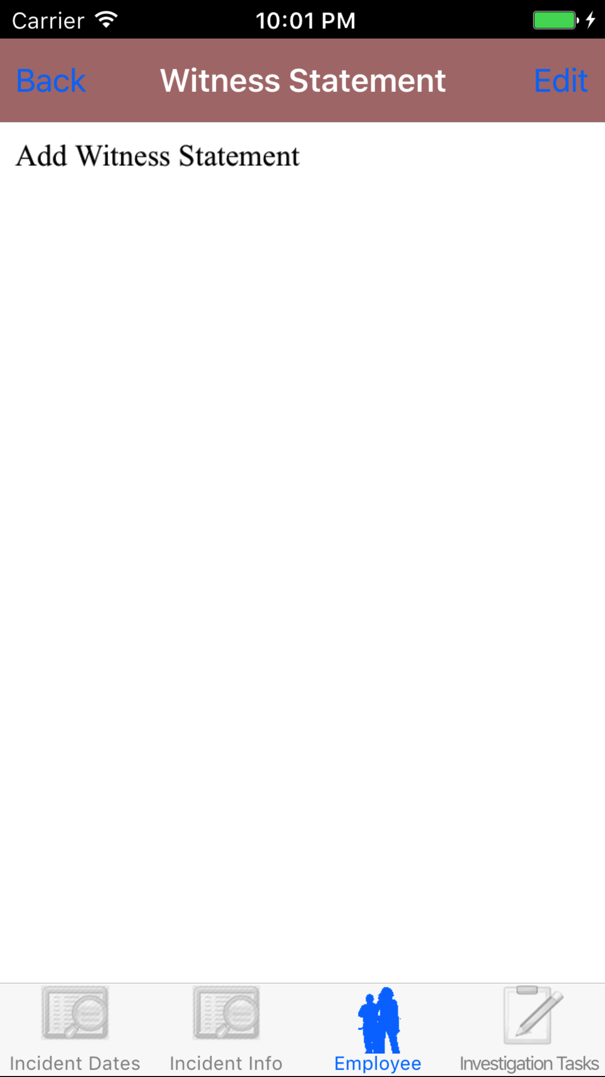 - Tap the employees name to add a witness statement for selected employee.