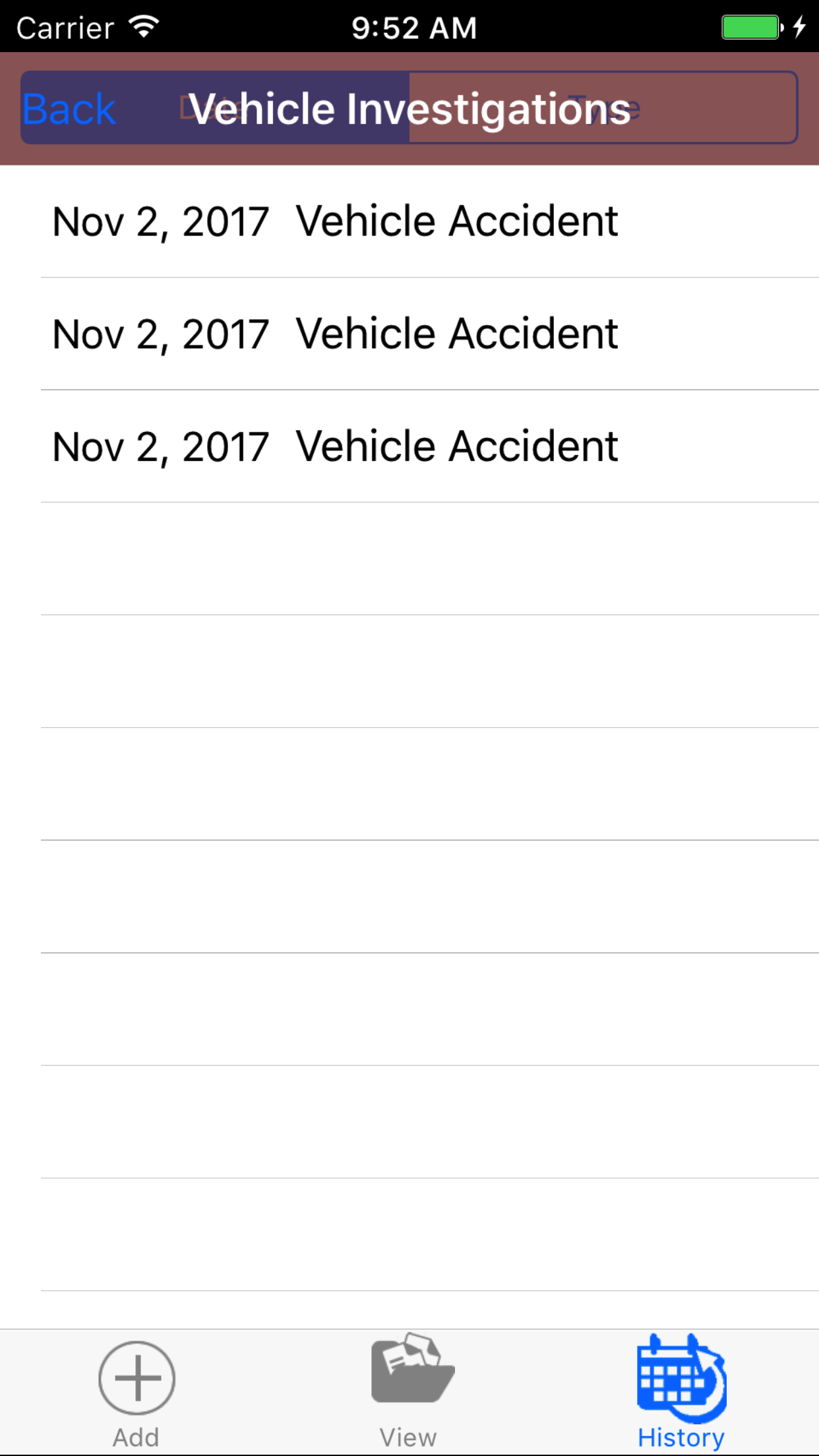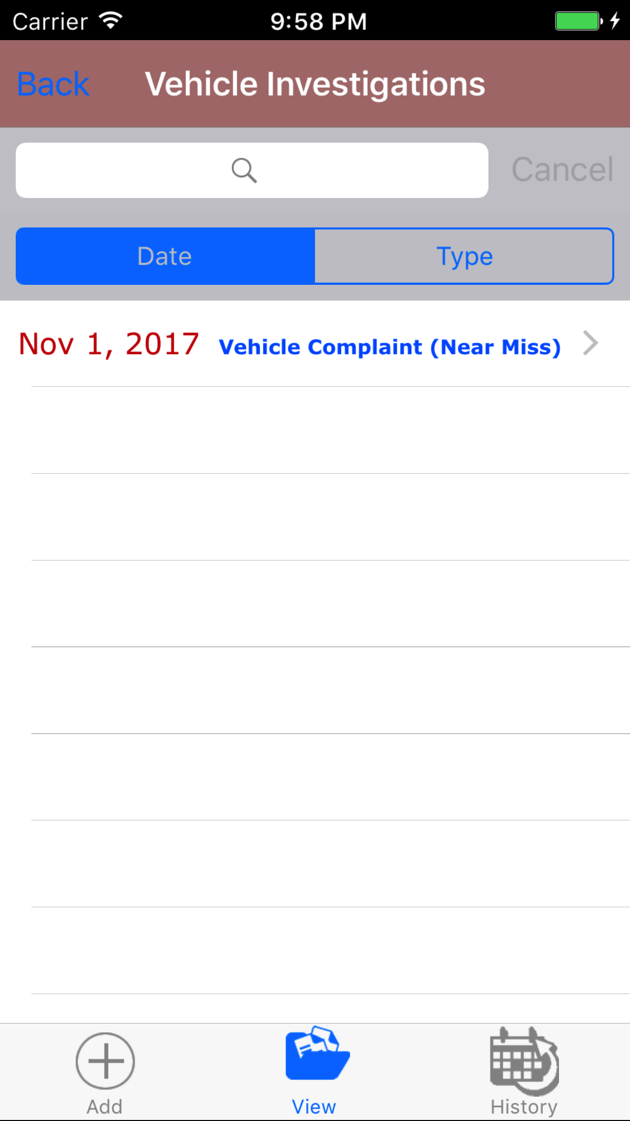 After Vehicle Investigations have been closed out, they will be available to look at through the History view on the iPhone Application.