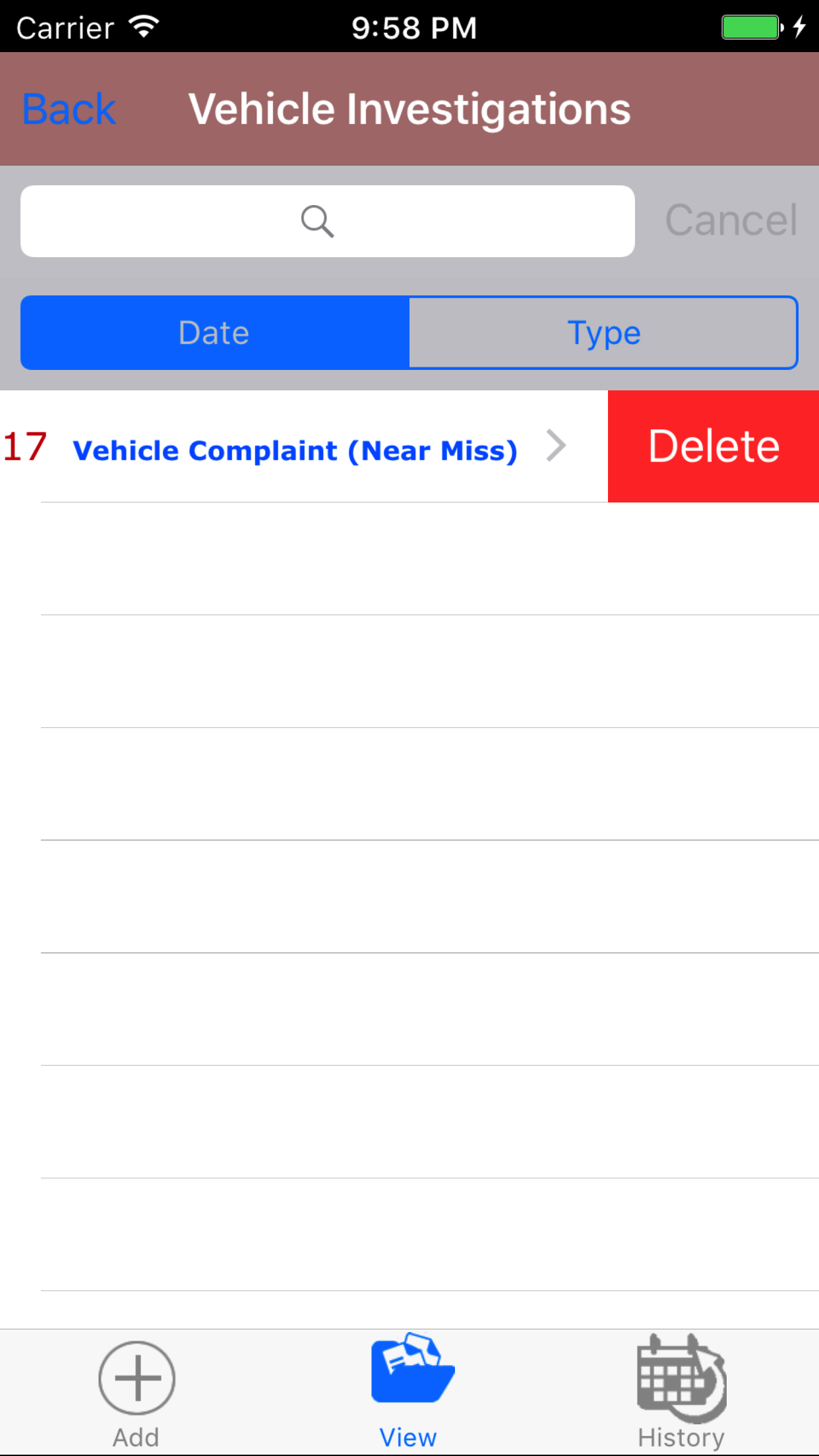 - Tap the Delete button. The vehicle investigation will be deleted.