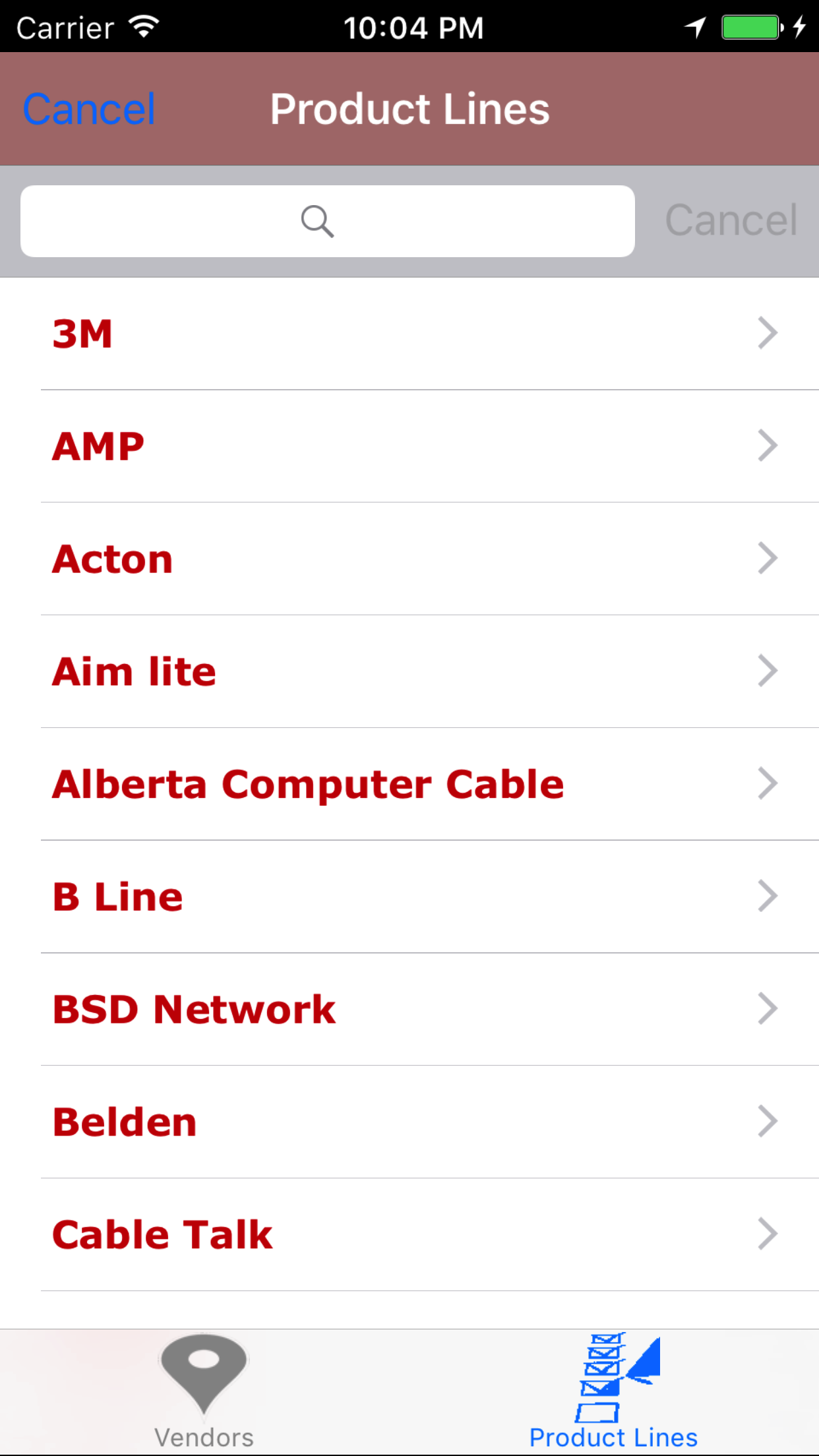 - This loads with a list of the vendors listing the vendor names in red text.