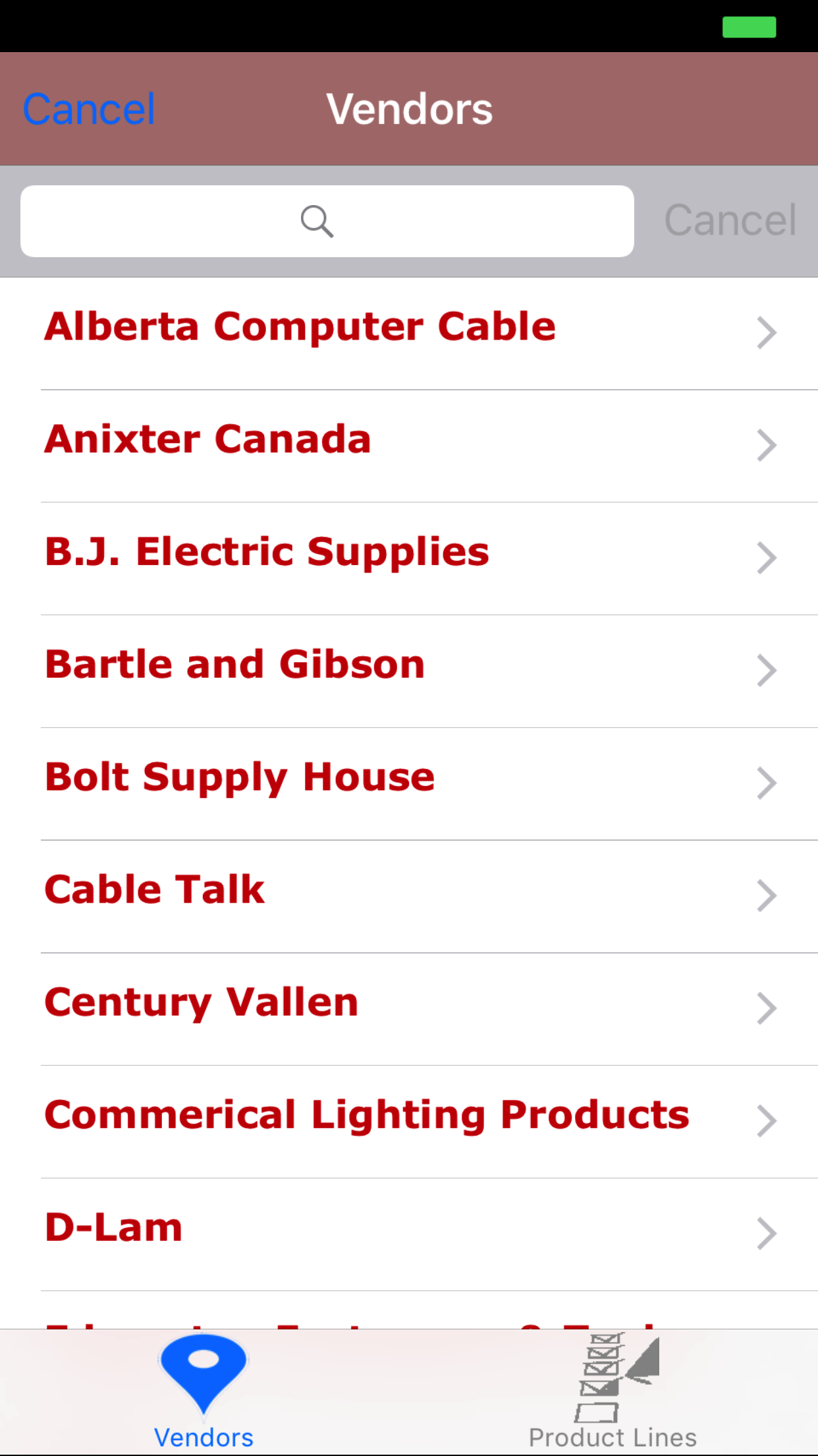 Vendors can be viewed through the R & T Electric Pro iPhone Application.