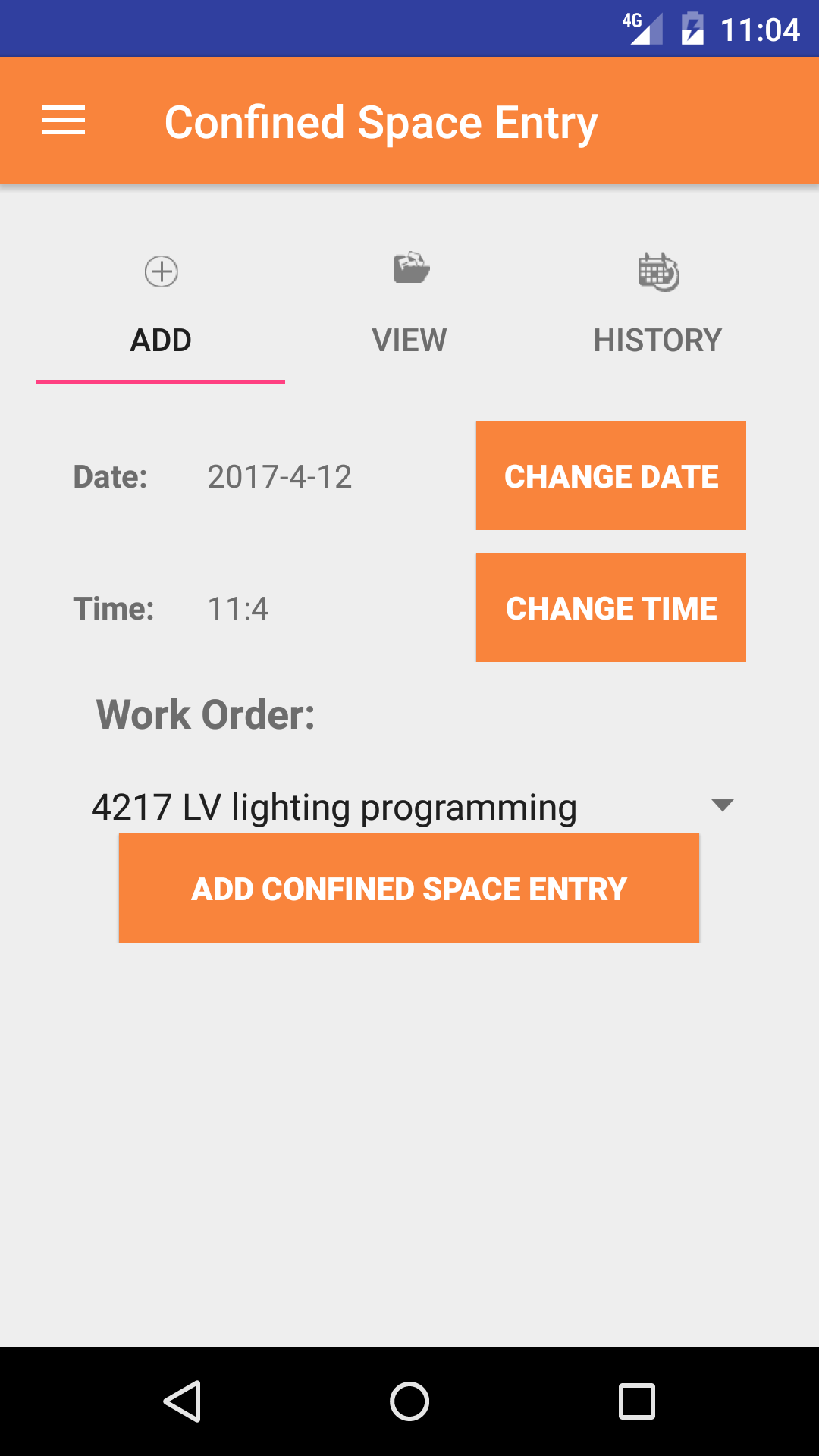 - Then tap on the Confined Space Entry button to open the Confined Space section.