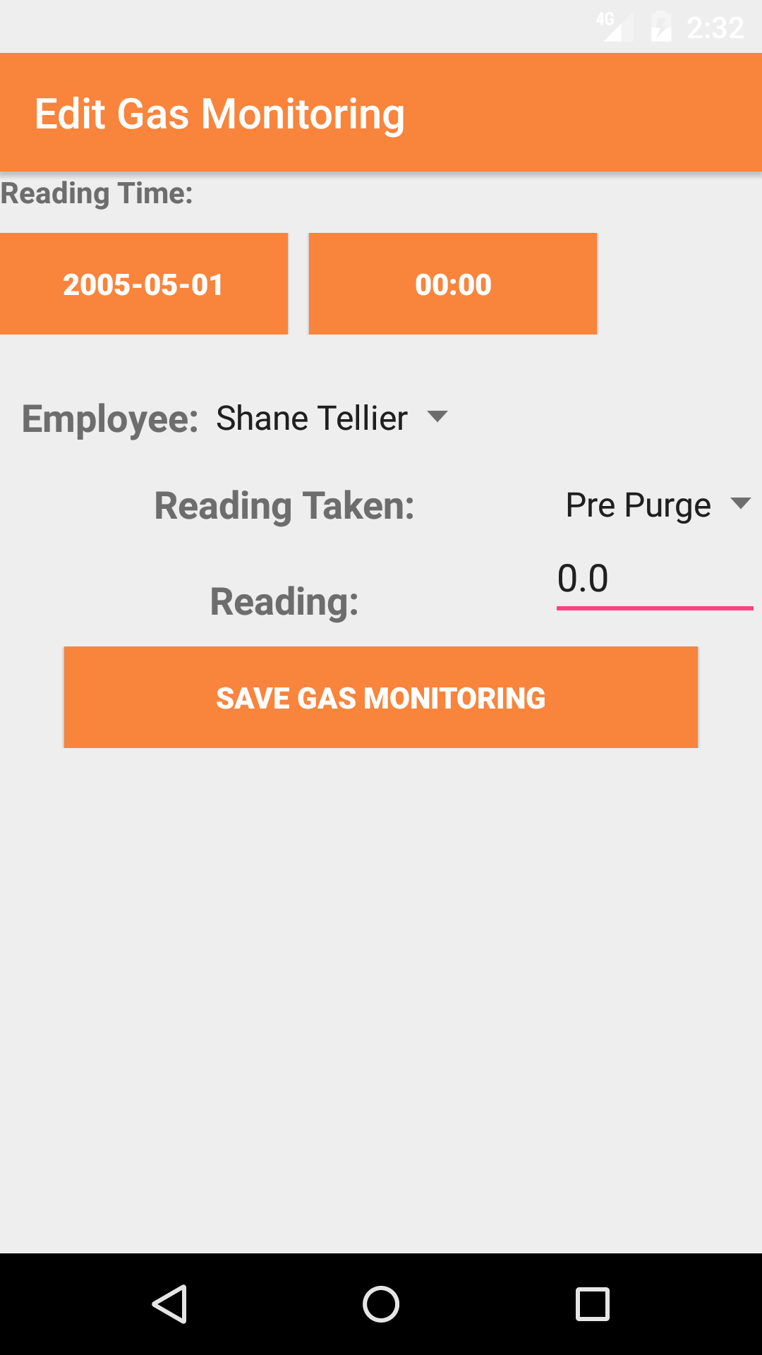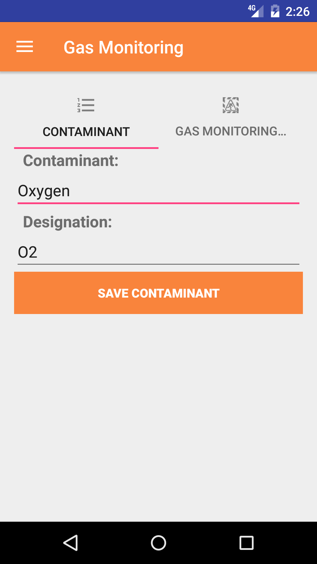 - Add/Edit gas monitoring readings for contaminant