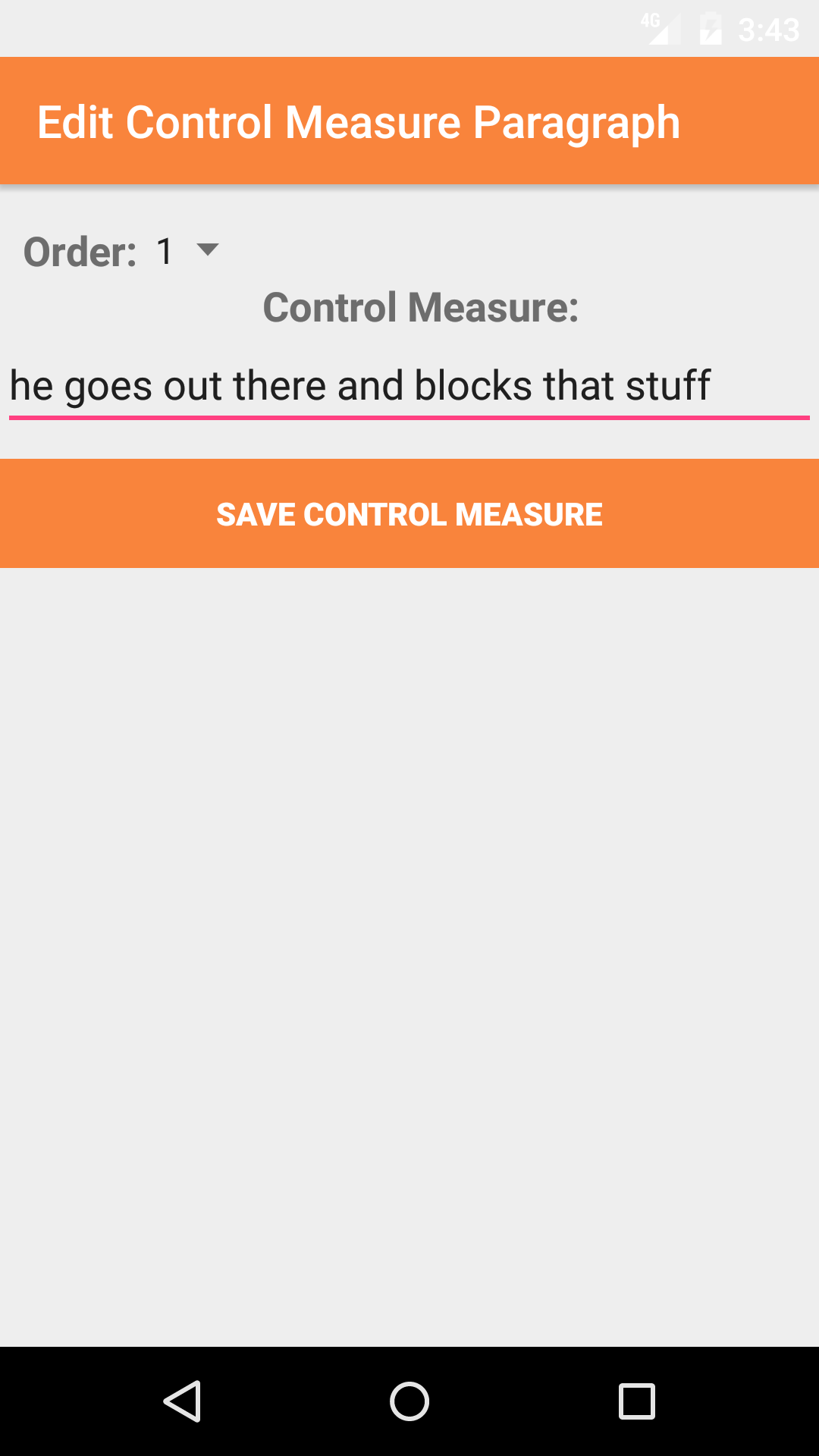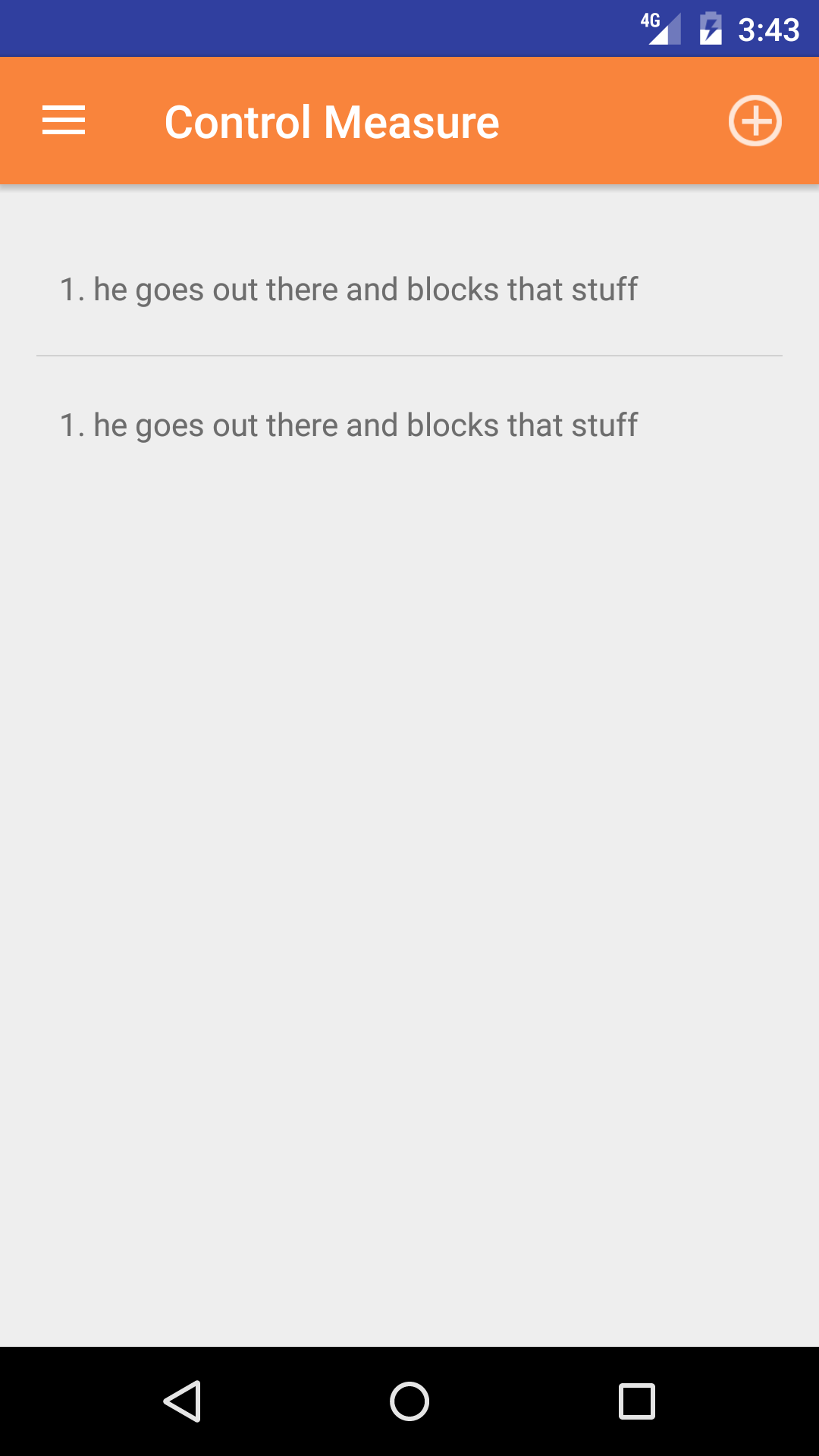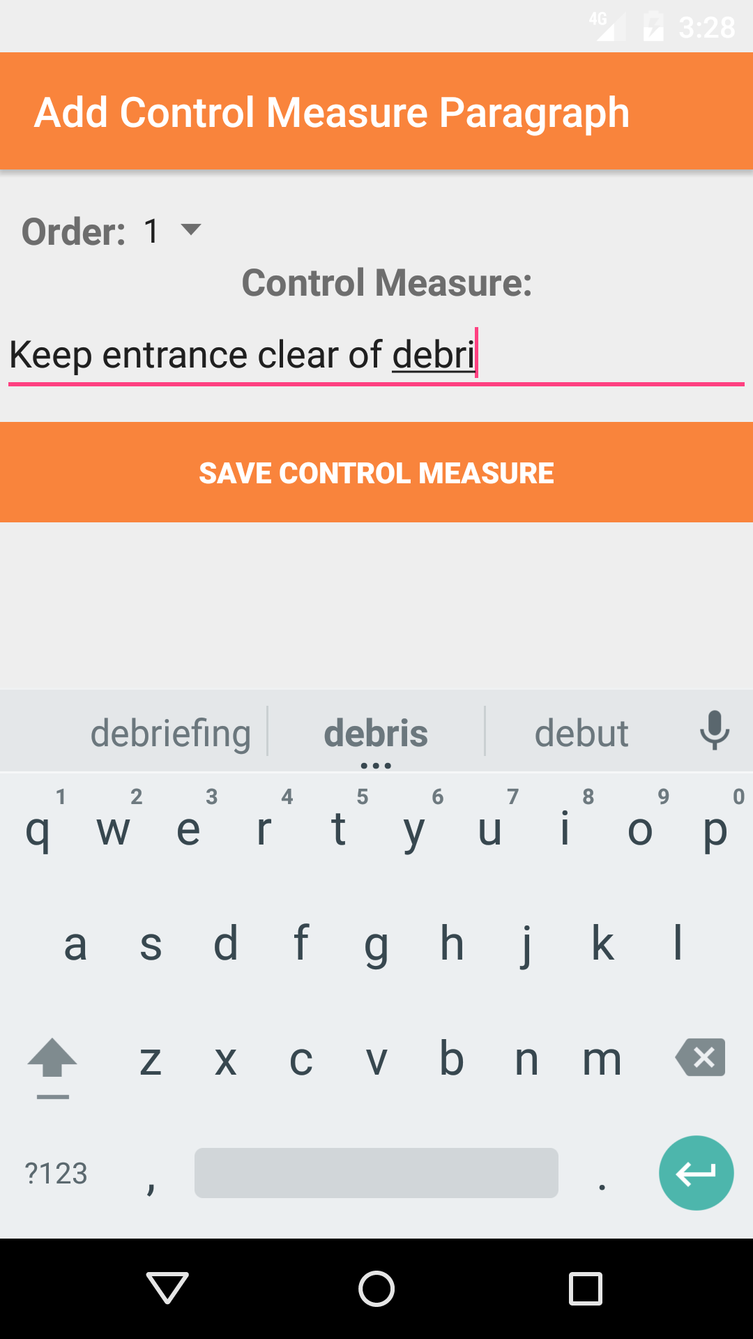 - Tap the + icon in the top right corner to open the Add Control Measure screen.