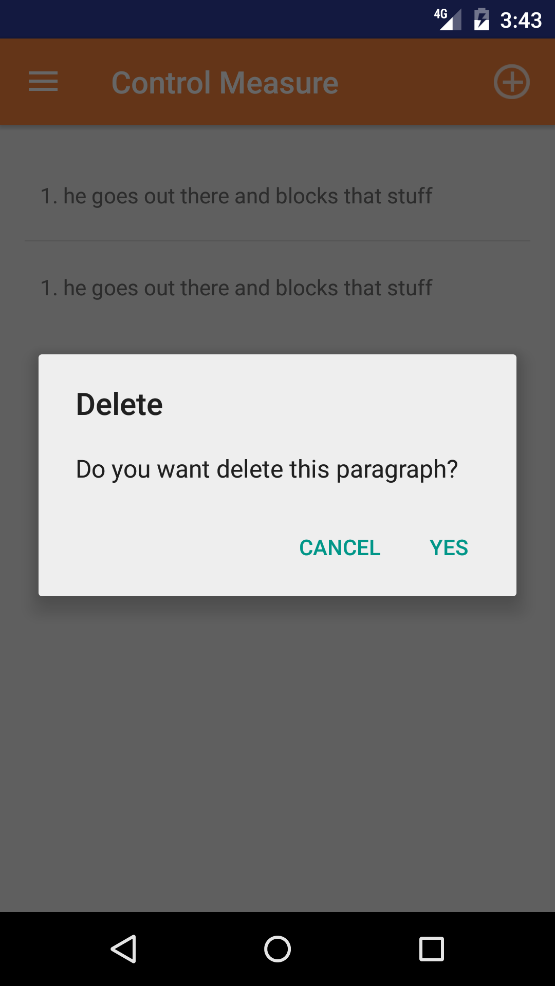 - Tap the Delete button. The control measure will be deleted from the confined space entry report.