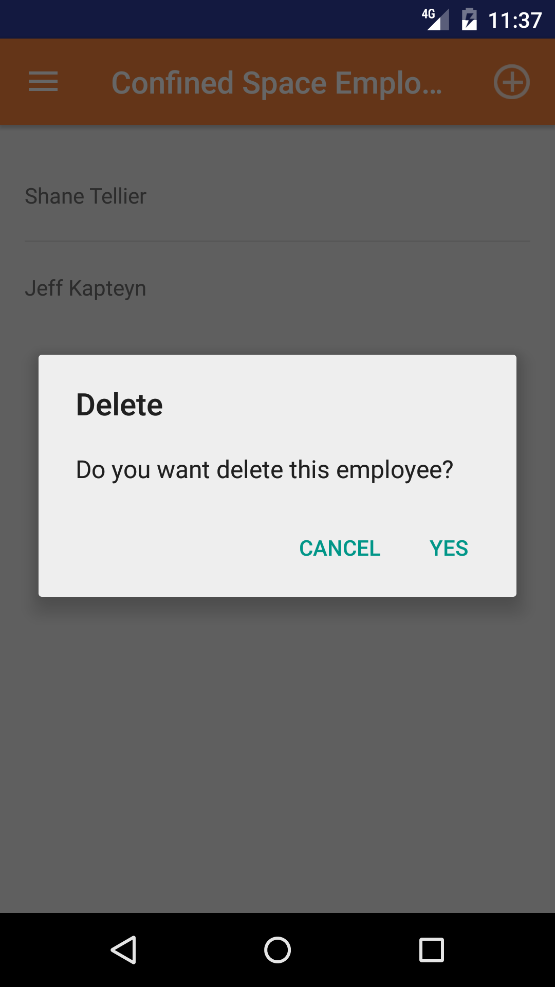 - Tap the Delete button. The entry log employee will be deleted from the confined space entry report.