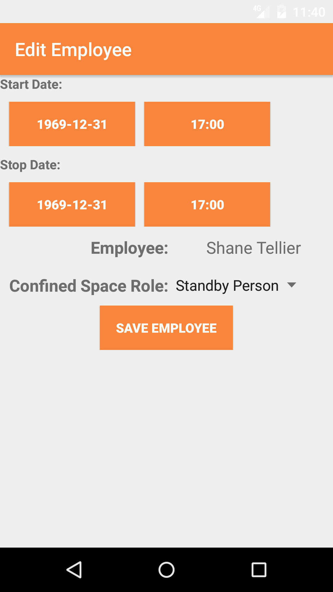 - Long Tap the entry log employee to bring up the delete screen for the entry log employee.