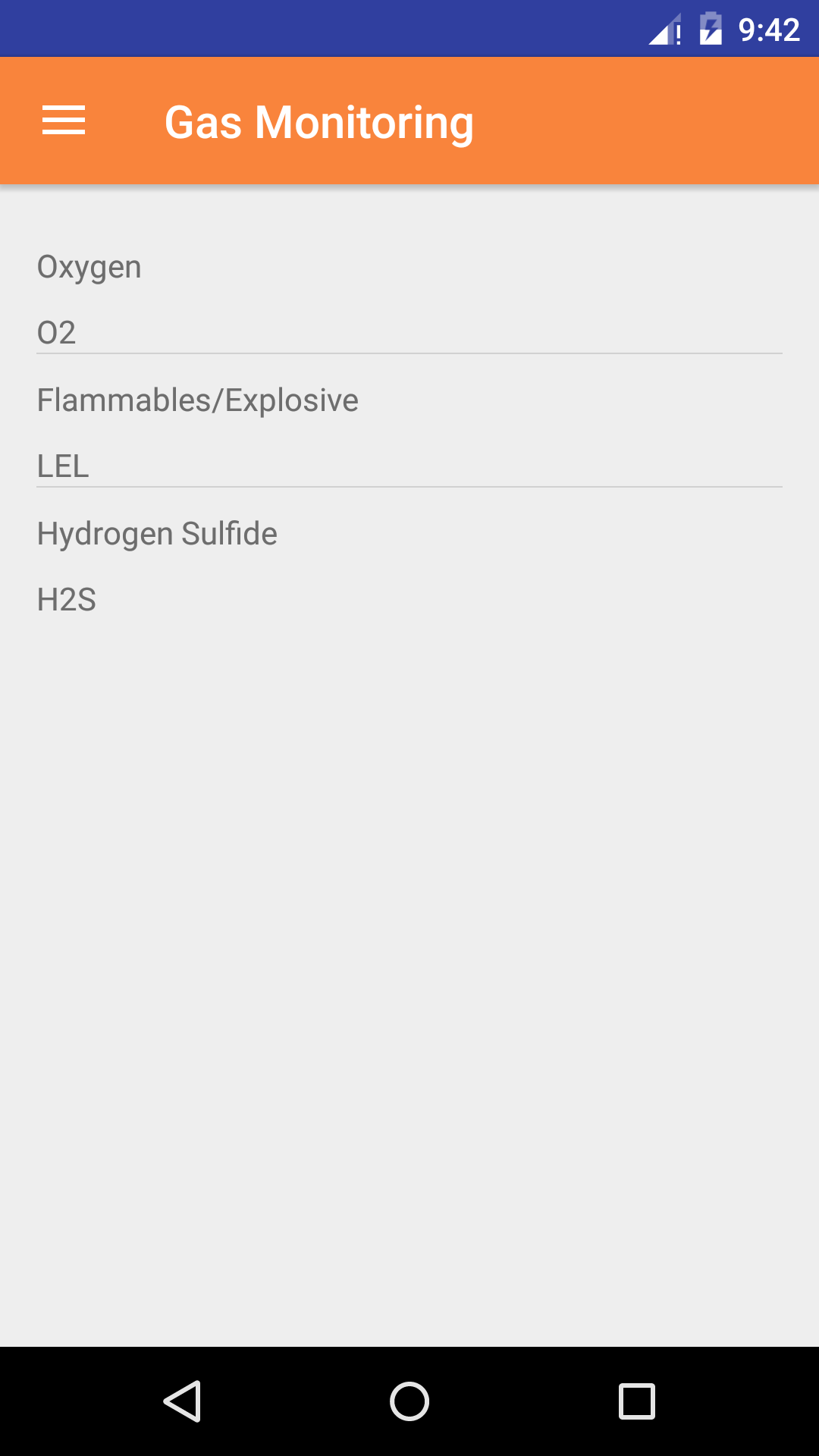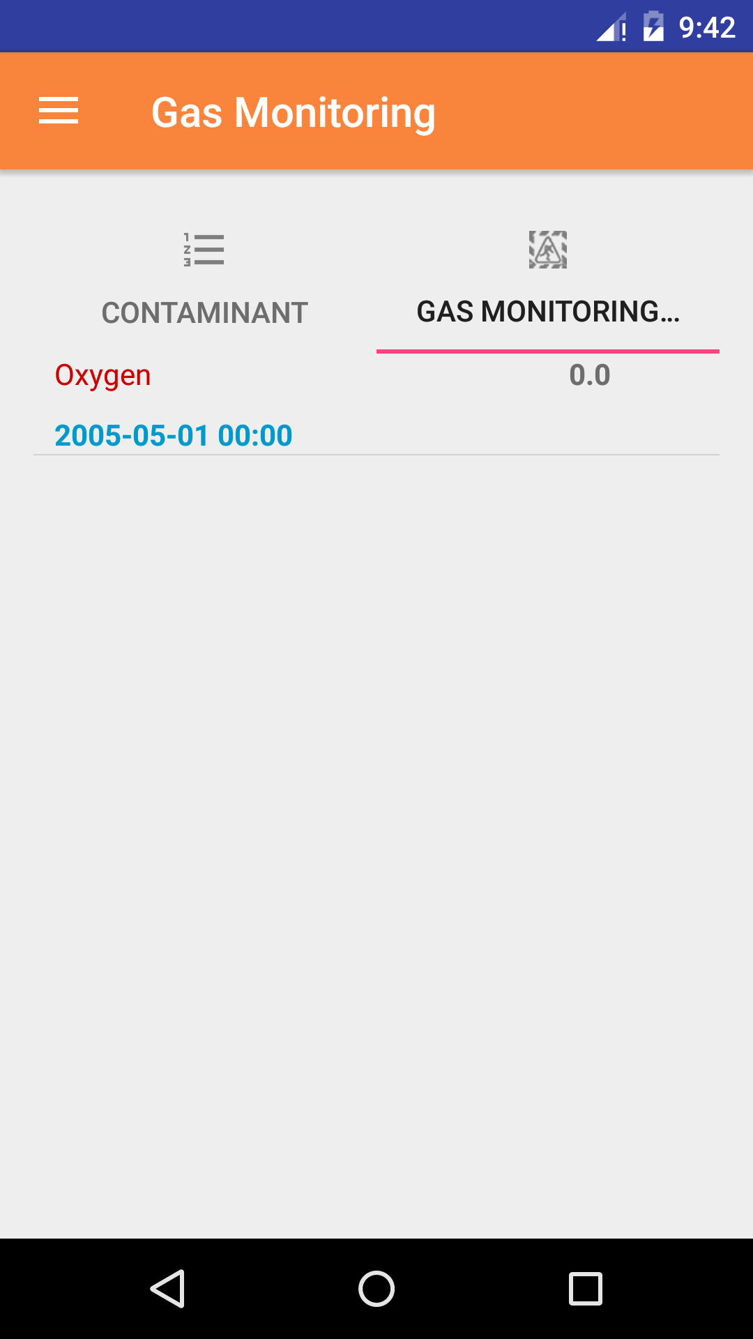 - Gas Monitoring readings for Contaminants