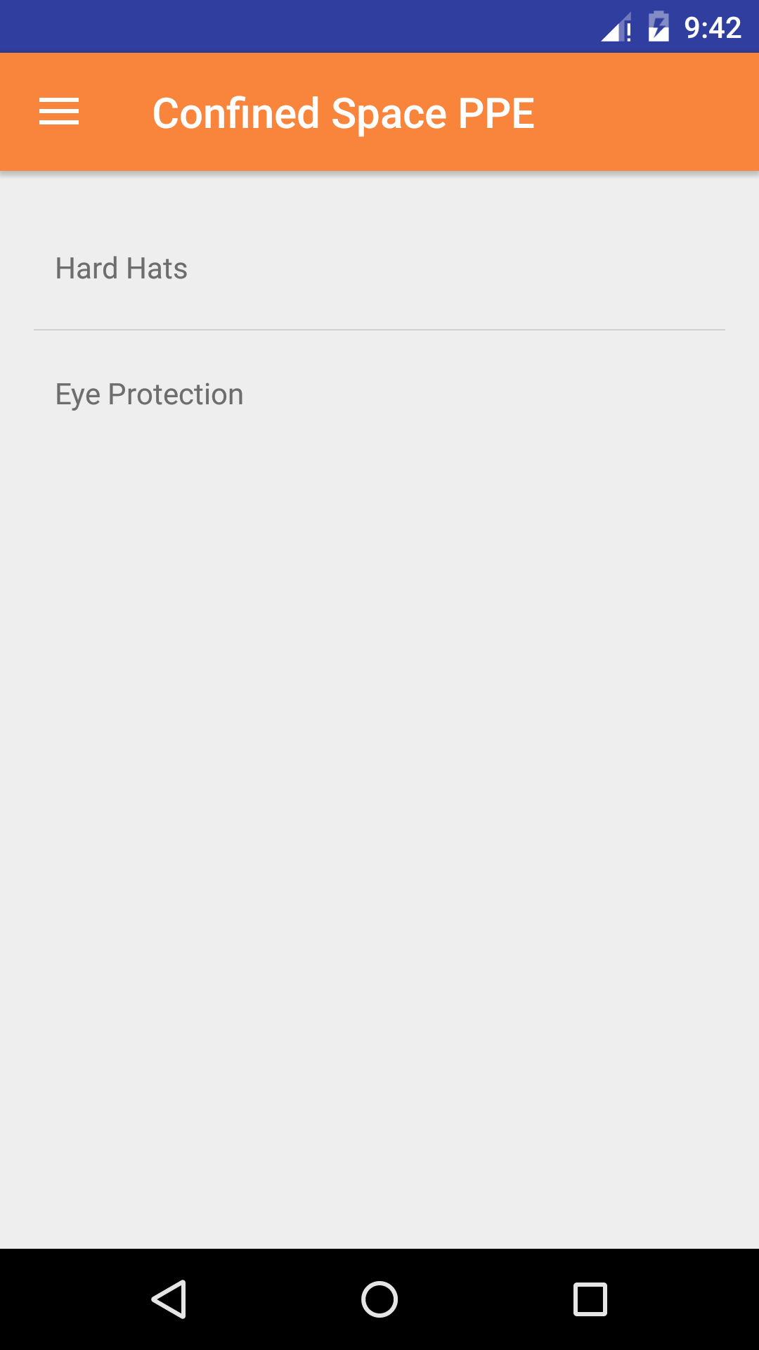 - Tap the Personal Protective Equipment button to load the list of personal protective equipment that should be worn during the entry to the confined space.