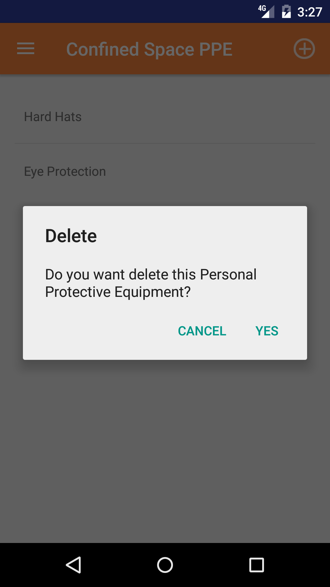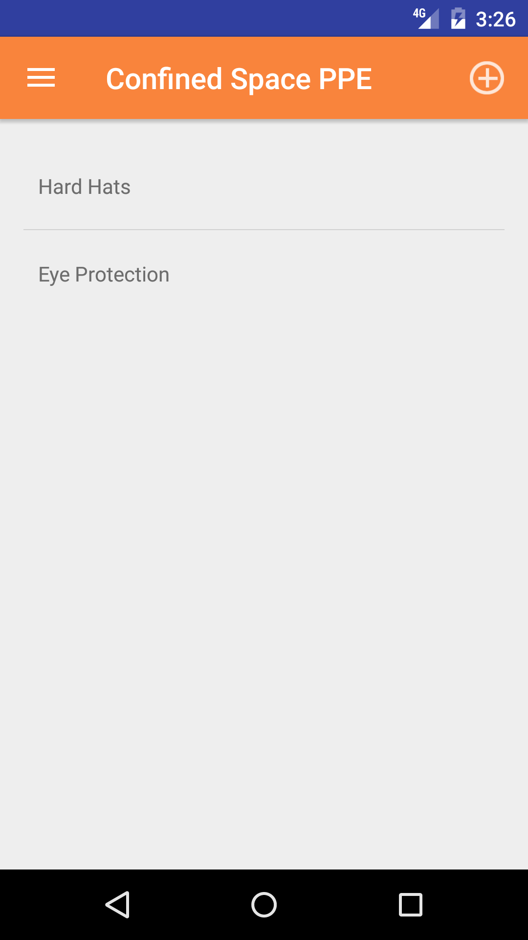 - Tap the + icon in the top right corner to open the Personal Protective Equipment list.