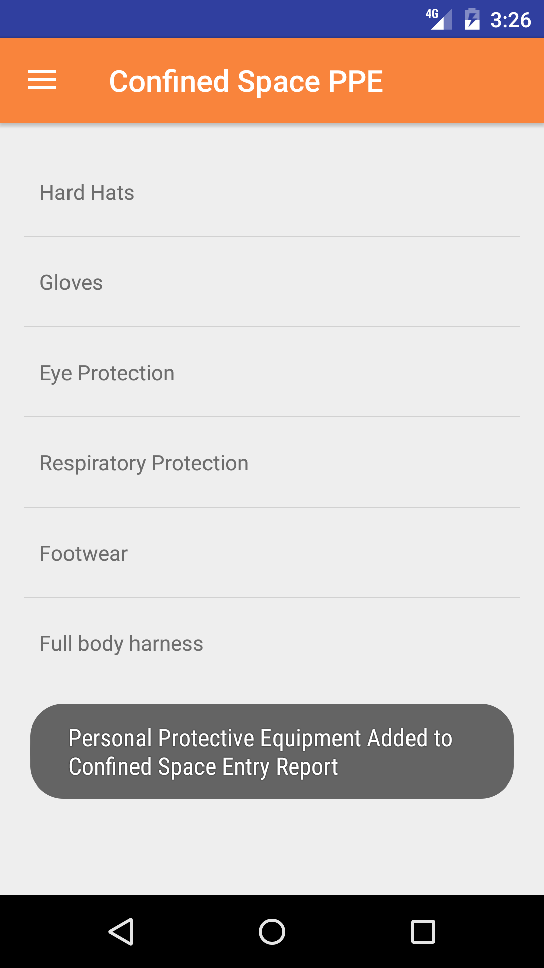 - Tap the personal protective equipment to add to the confined space entry report.