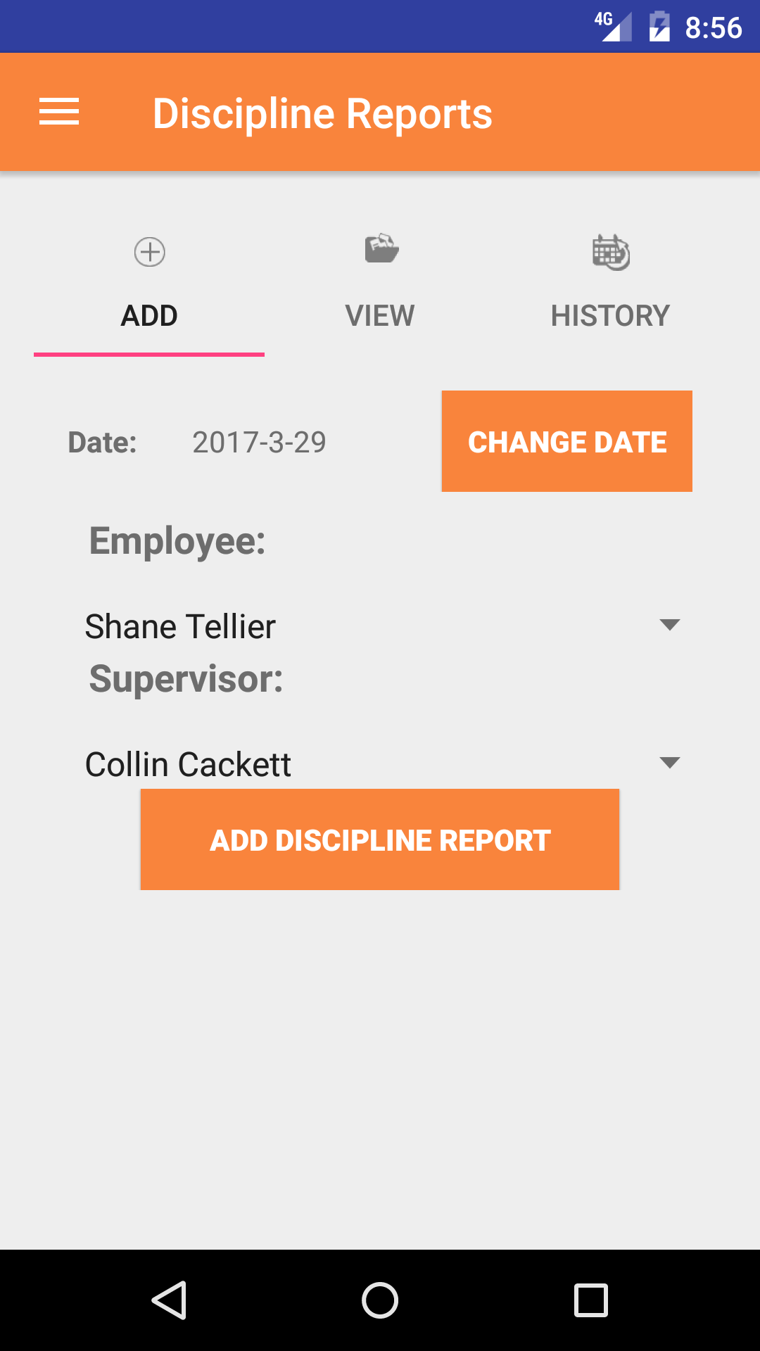 - Tap the Add Discipline Report button to add the Disciplinary Report.
