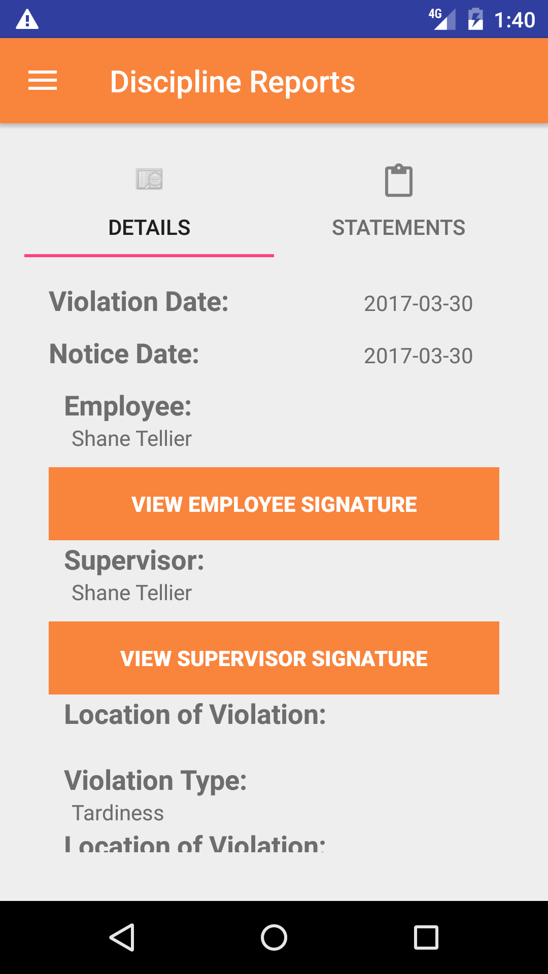 - Tap on the employee you would like to add a statement for. This will take you back to the statements screen.
