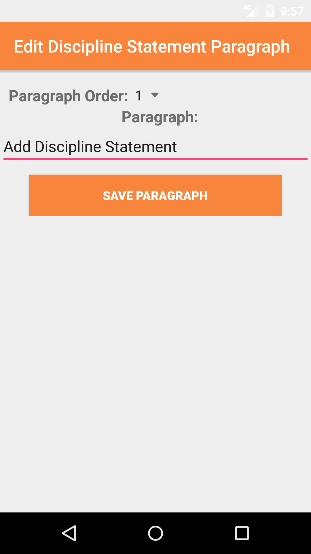 Order of Paragraphs: The order of paragraph field allows field staff to order the paragraphs of a statement in any order they see fit, select from the select box the number you want the paragraph to be ordered as.