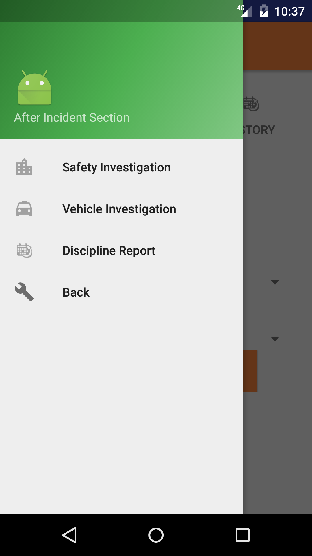 - From the Main Menu screen, tap the After Incident button.