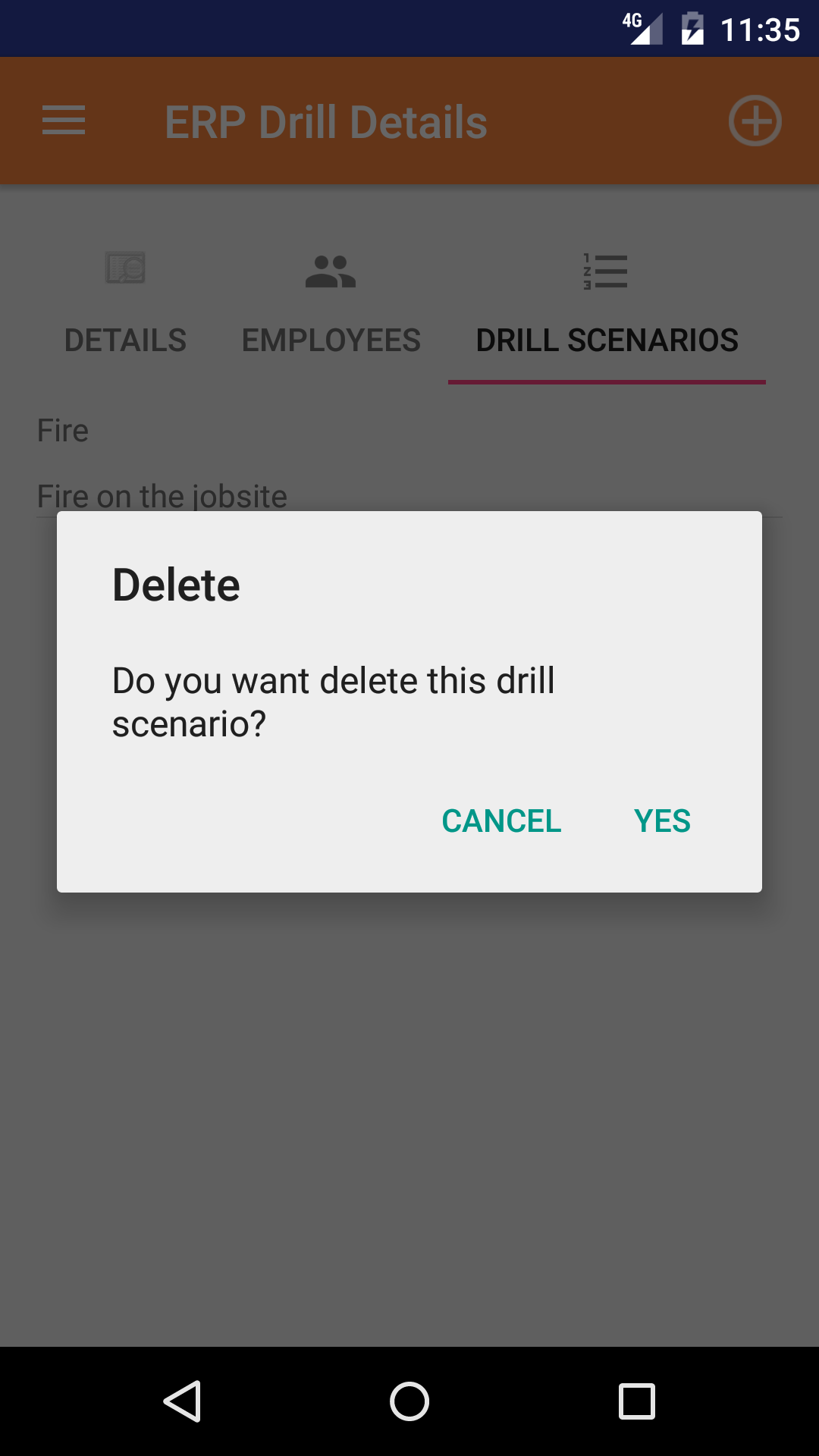 - Long Tap the emergency response plan drills to bring up the delete screen for the emergency response plan drill.