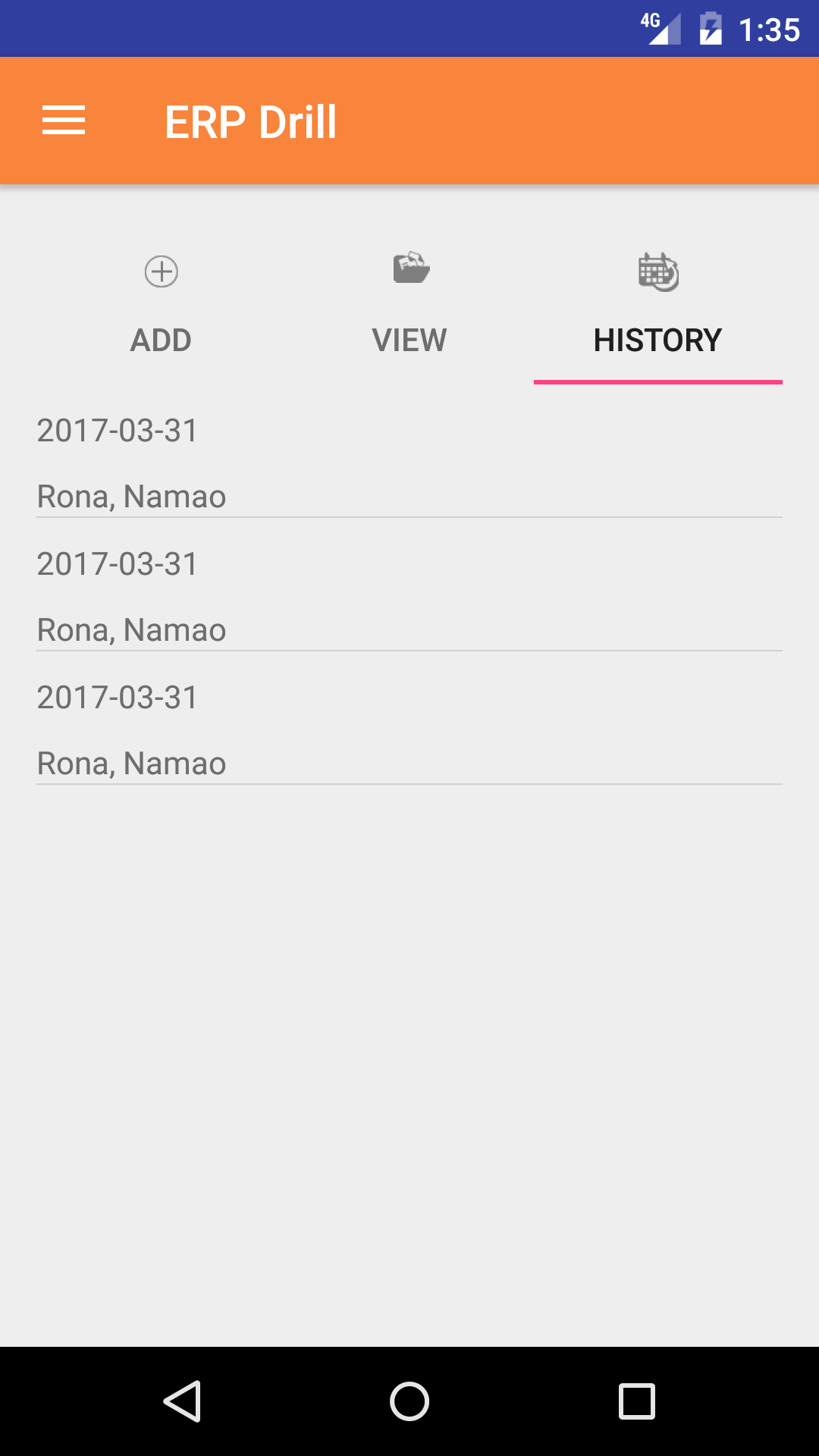 - Then tap on the third tab on the bottom of the screen, this opens the Emergency Response Plan Drill History screen.
