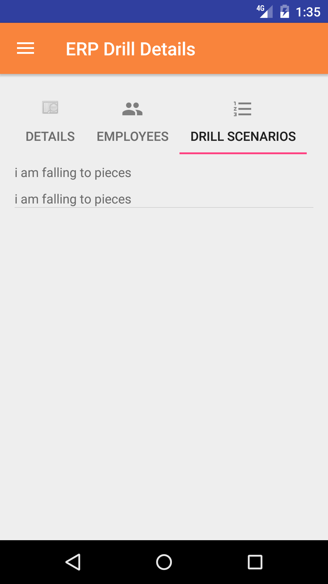 - Tap on the third tab, the Drill Scenario icon at the bottom of the screen to open the Drill Scenario screen. The screen loads with the list