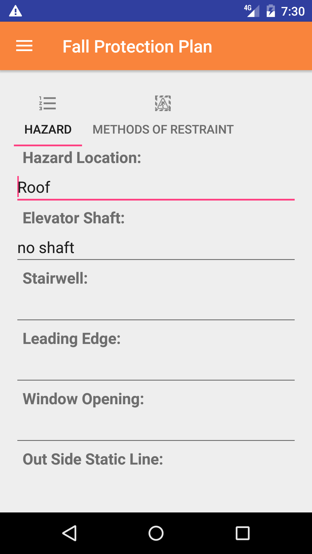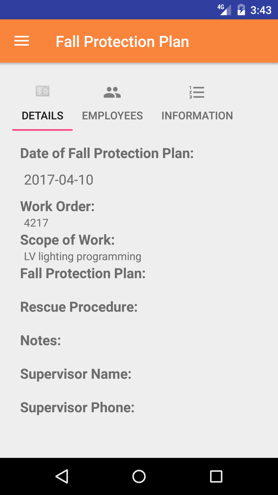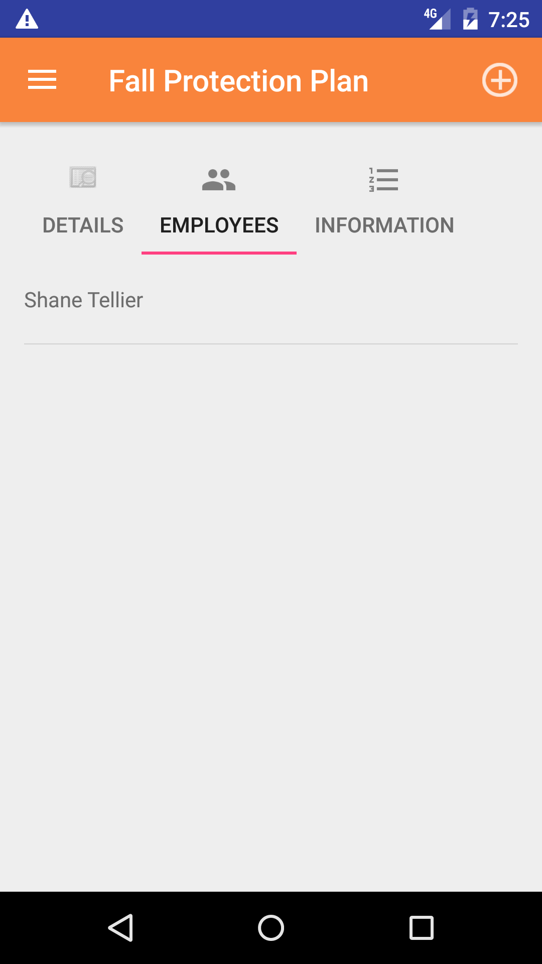 - Tap the second tab on the menu, the Fall Protection Plan view.