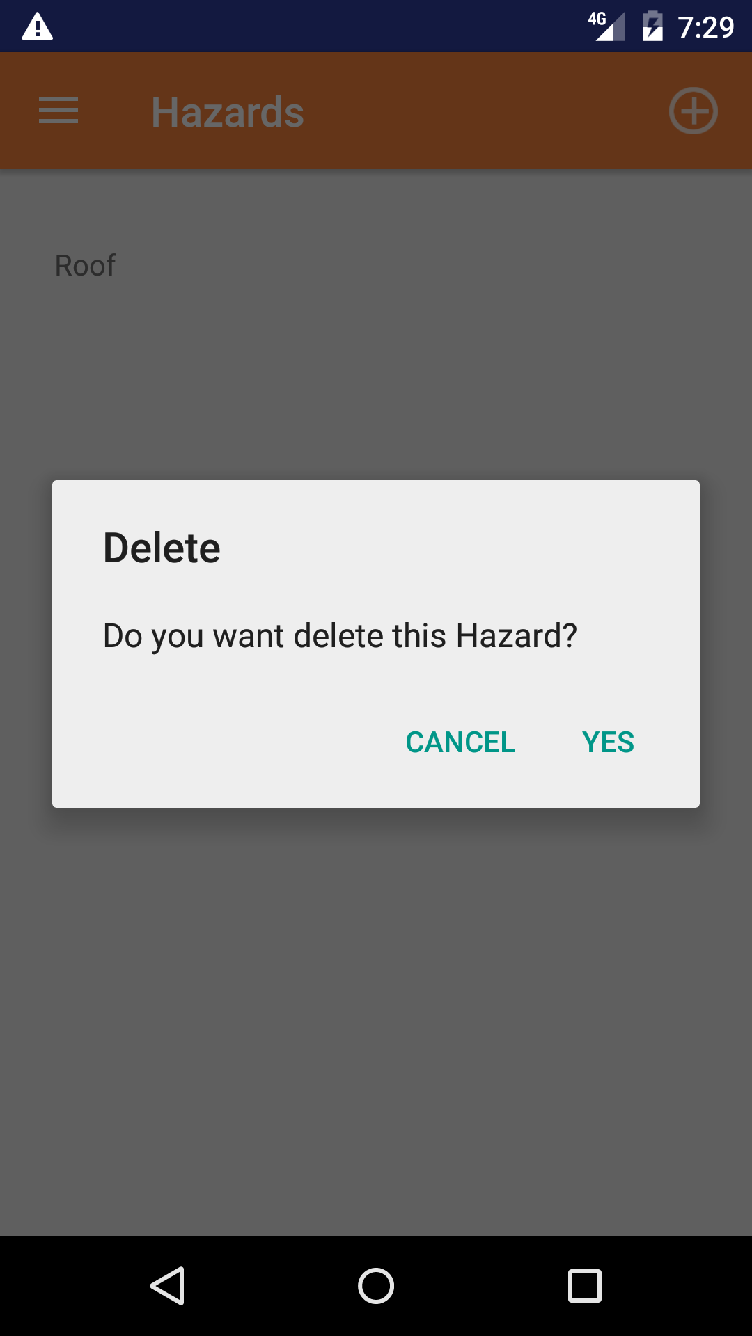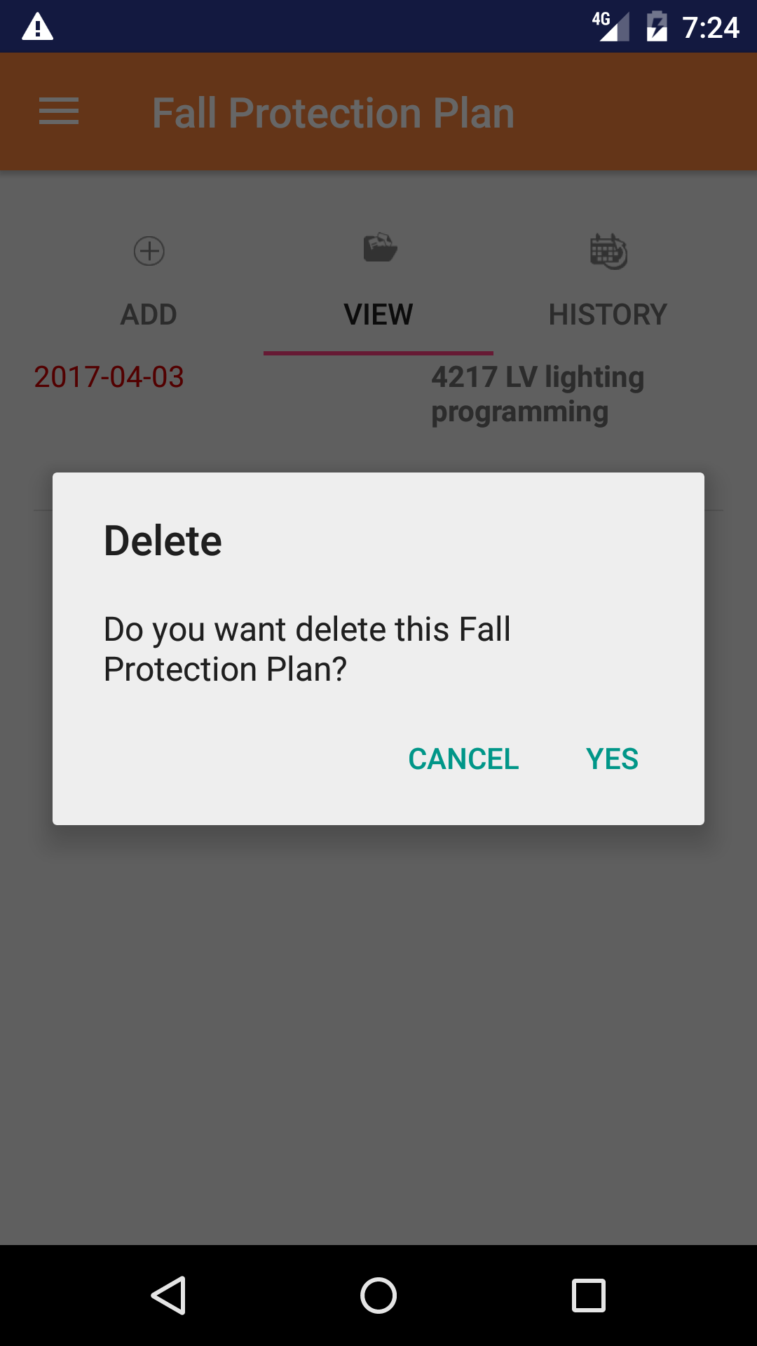 - Tap the Delete button. The hazard, method of restraints and hazard sketch will be deleted from the fall protection plan.