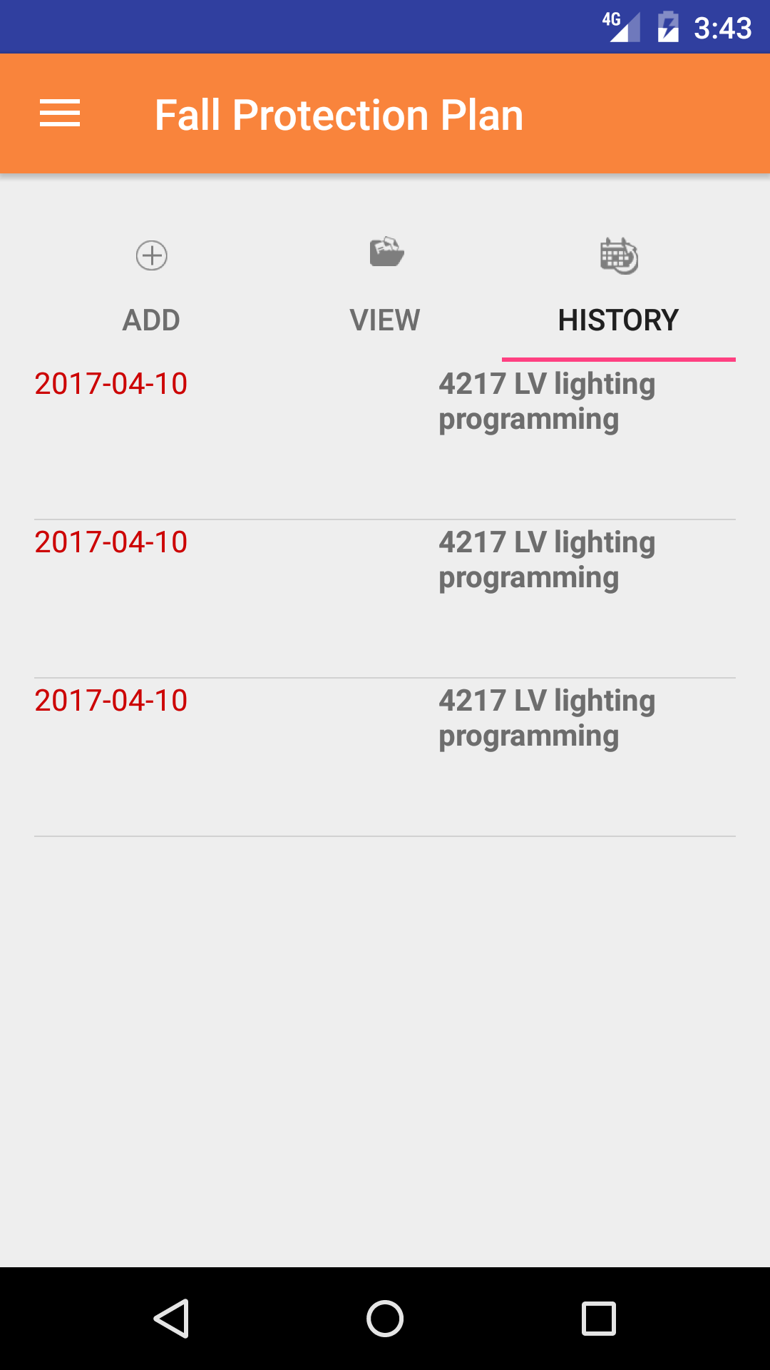 After Fall Protection Plans have been closed out, they will be available to look at through the History view on the iPhone Application.
