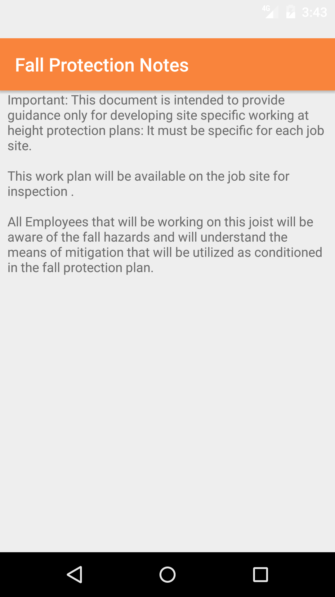 - Tap the Fall Protection Plan Notes button which loads the fall protection plan notes.