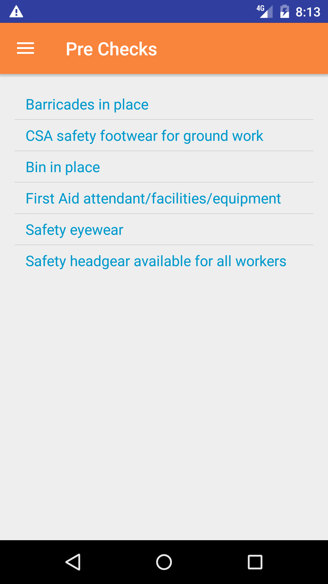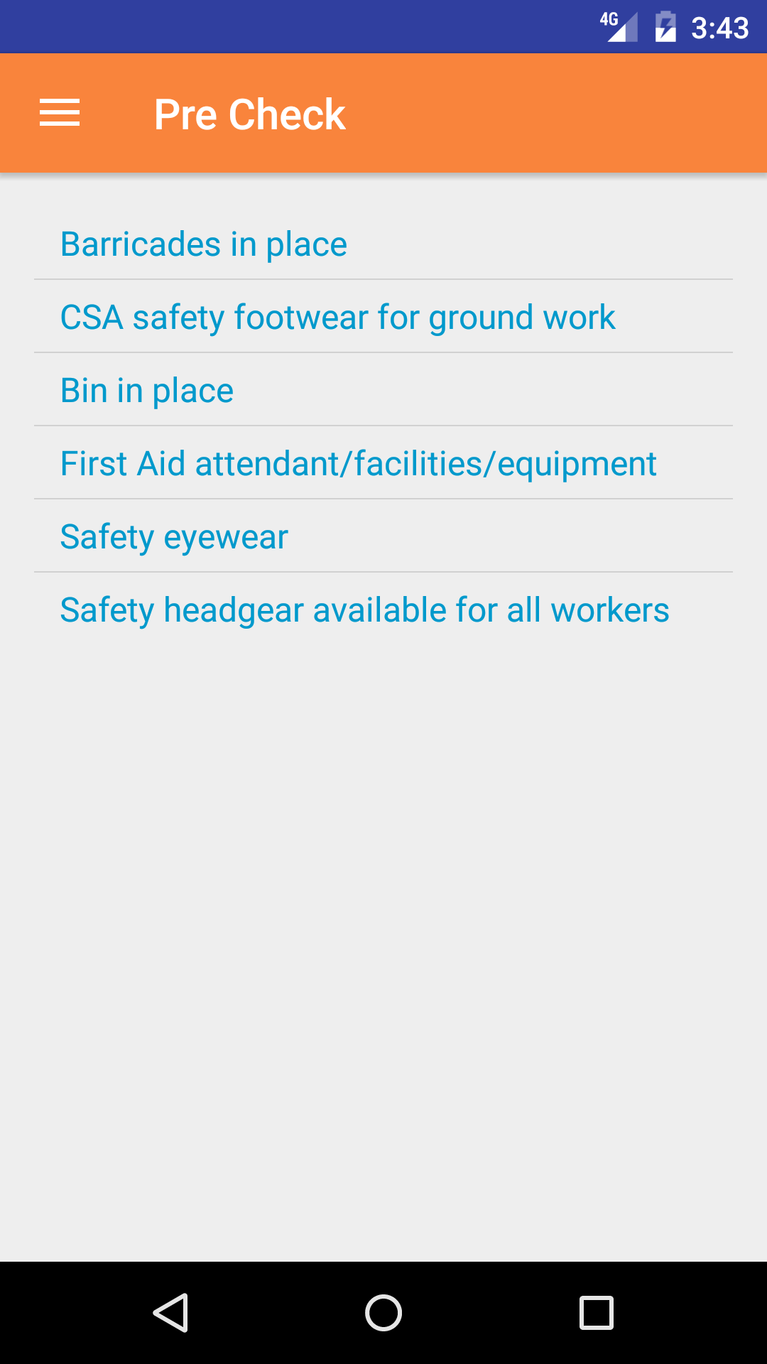 The pre work,ladder, and methods of restraint checklists are configured and maintained by company staff, to match up with companies safety concerns and field of work. The checklist categories include