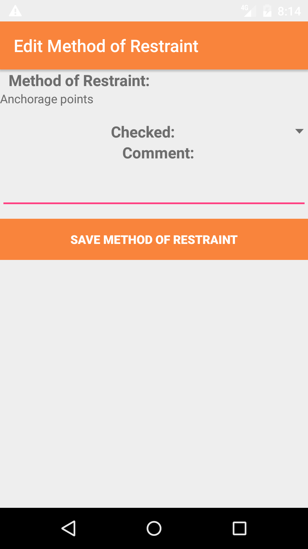 - Tap Checked on the __|Checked selector to indicate that he method of restraint will be used.