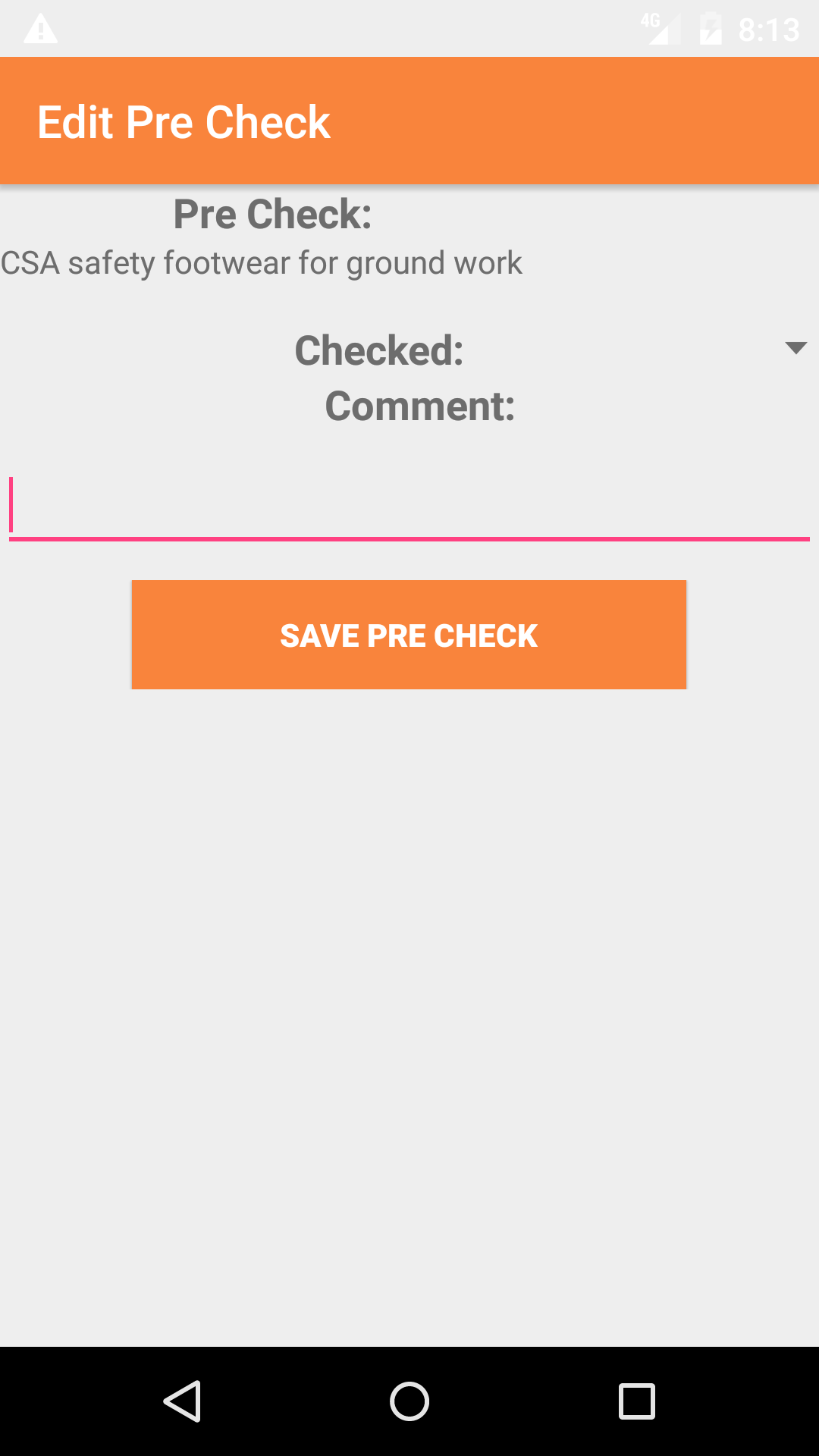 - Tap Checked on the __|Checked selector to indicate the pre check detail has been reviewed.