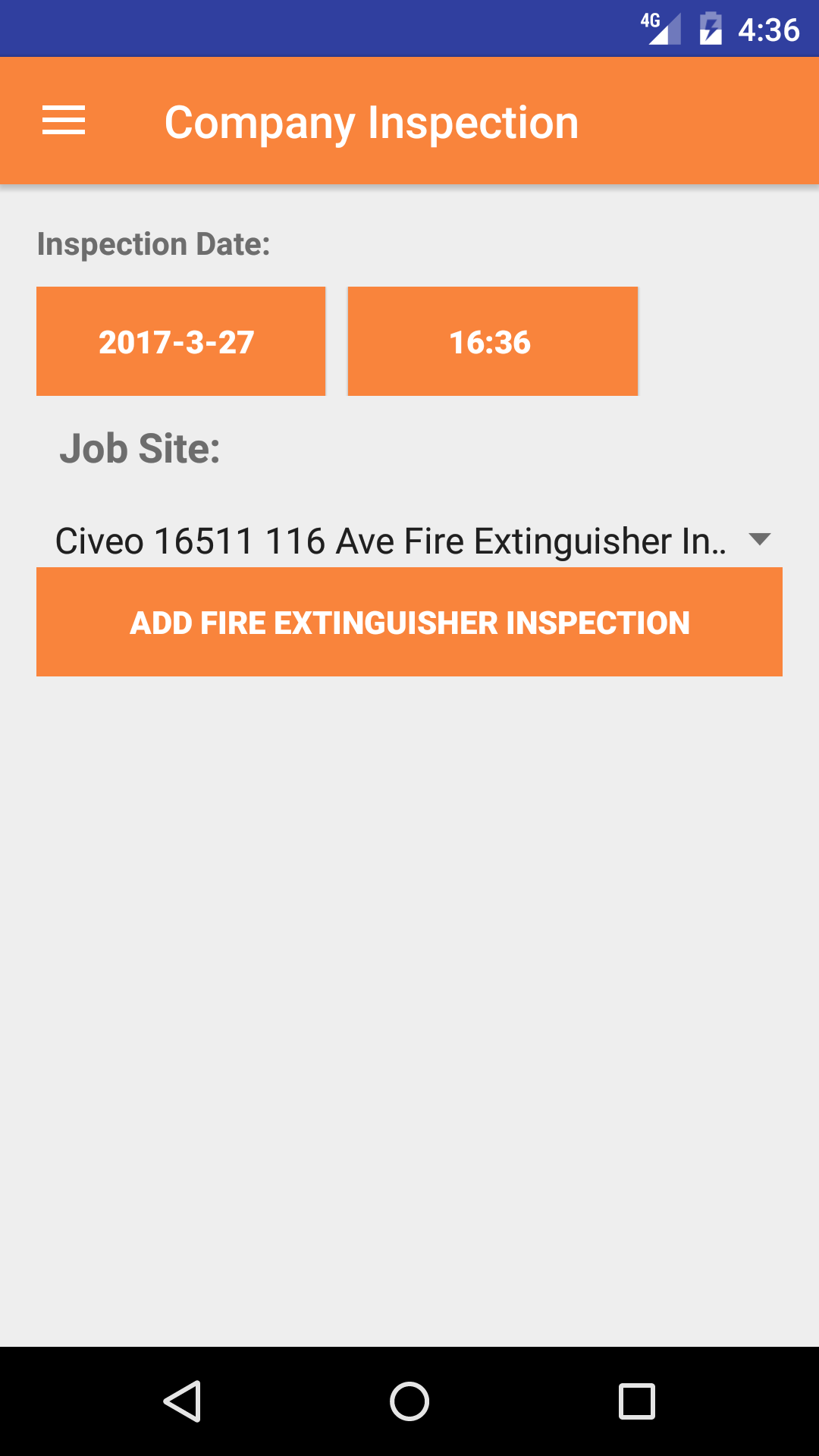 - Tap the Add Fire Extinguisher Inspection for Job Site button.
