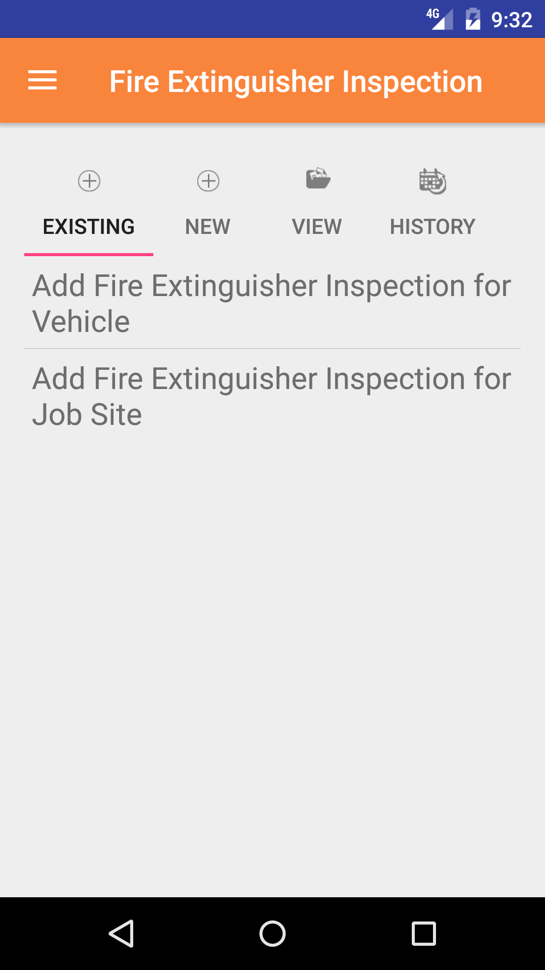 - Tap the second tab on the menu, the Fire Extinguisher Inspection view.