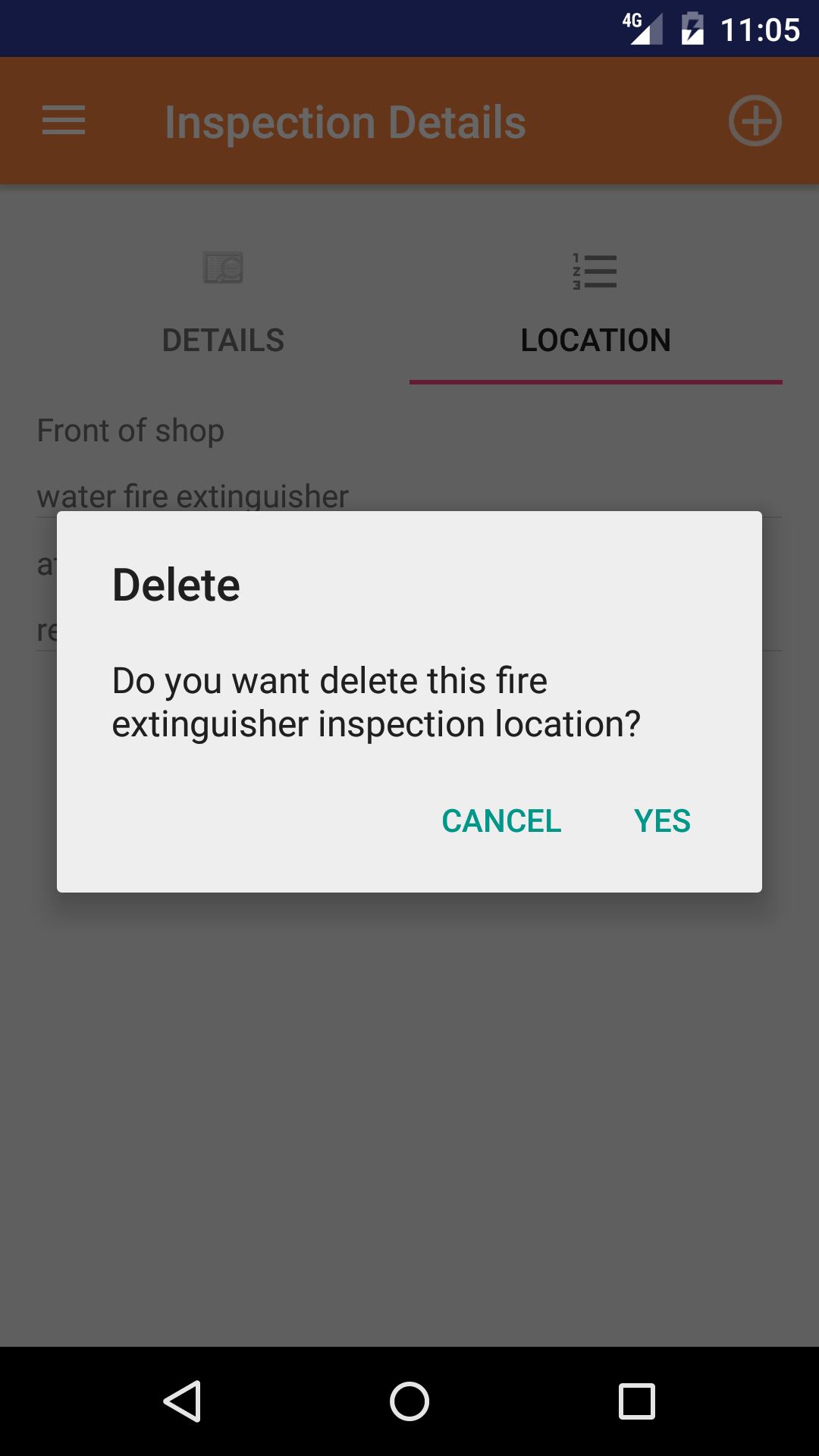 - Tap the Delete button. The fire extinguisher inspection will be deleted.