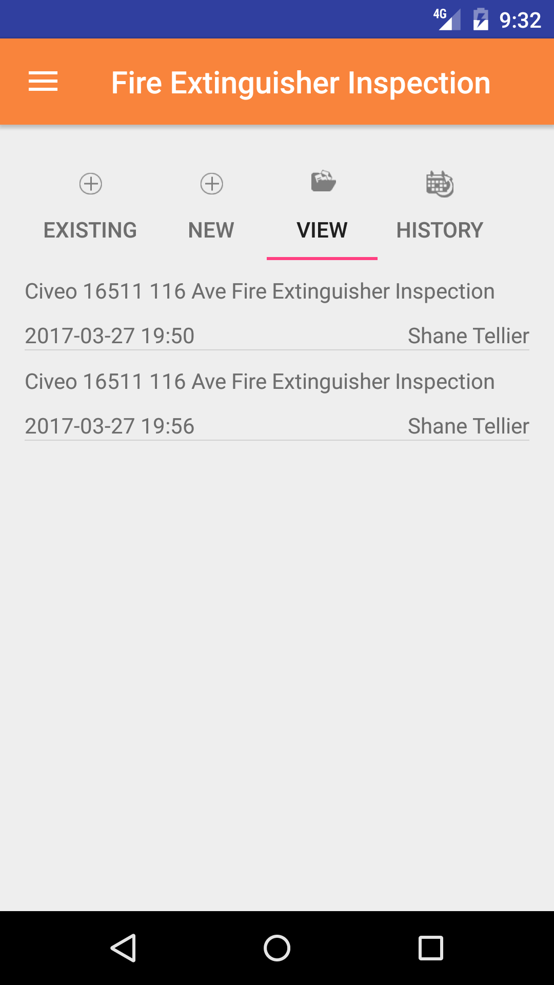 - Tap the third tab on the menu, the Fire Extinguisher Inspection view.