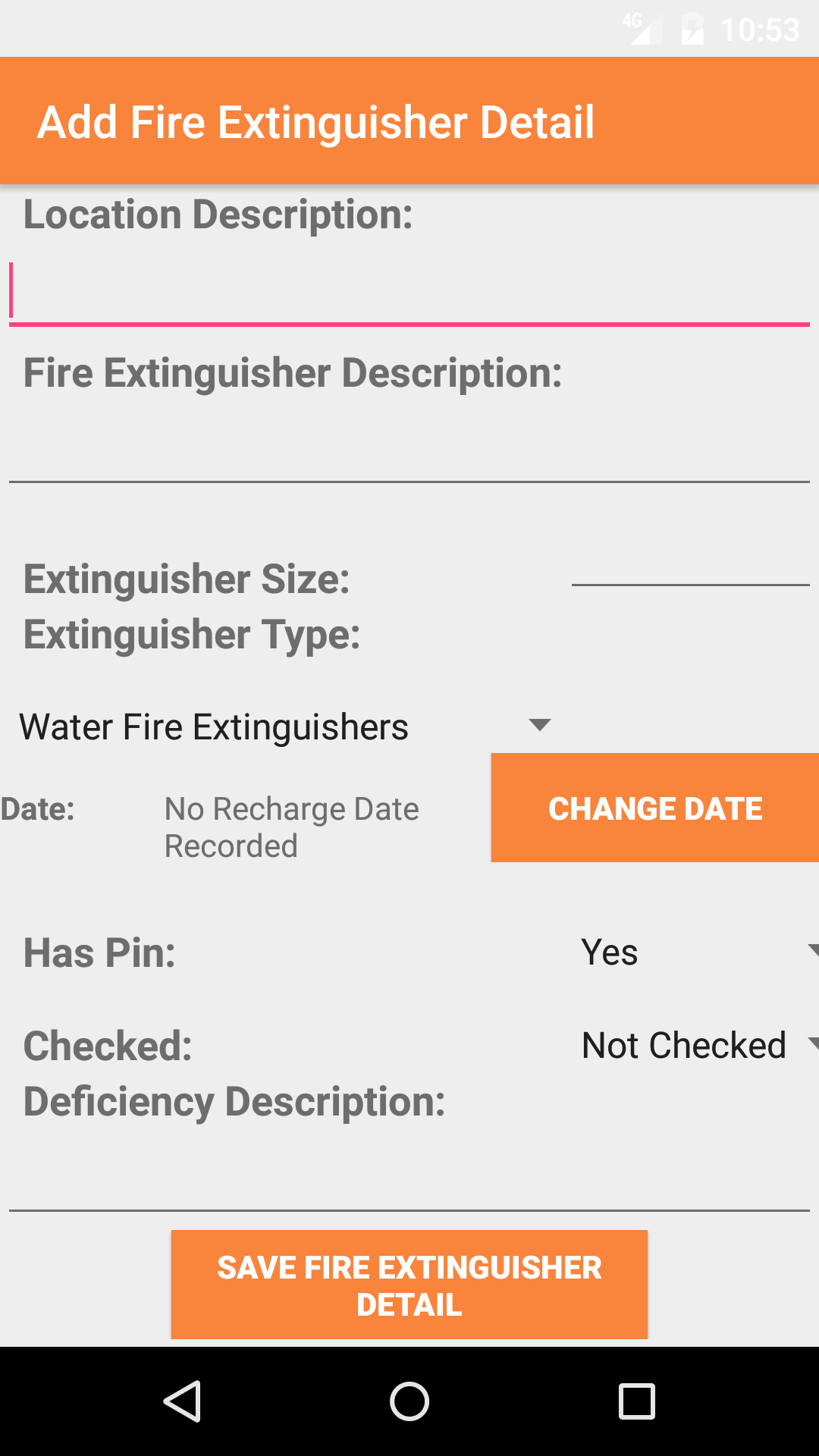 - Then tap on the Fire Extinguisher Inspection button.