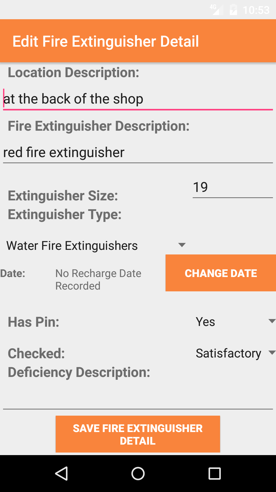 Once on the edit Fire Extinguisher Location screen