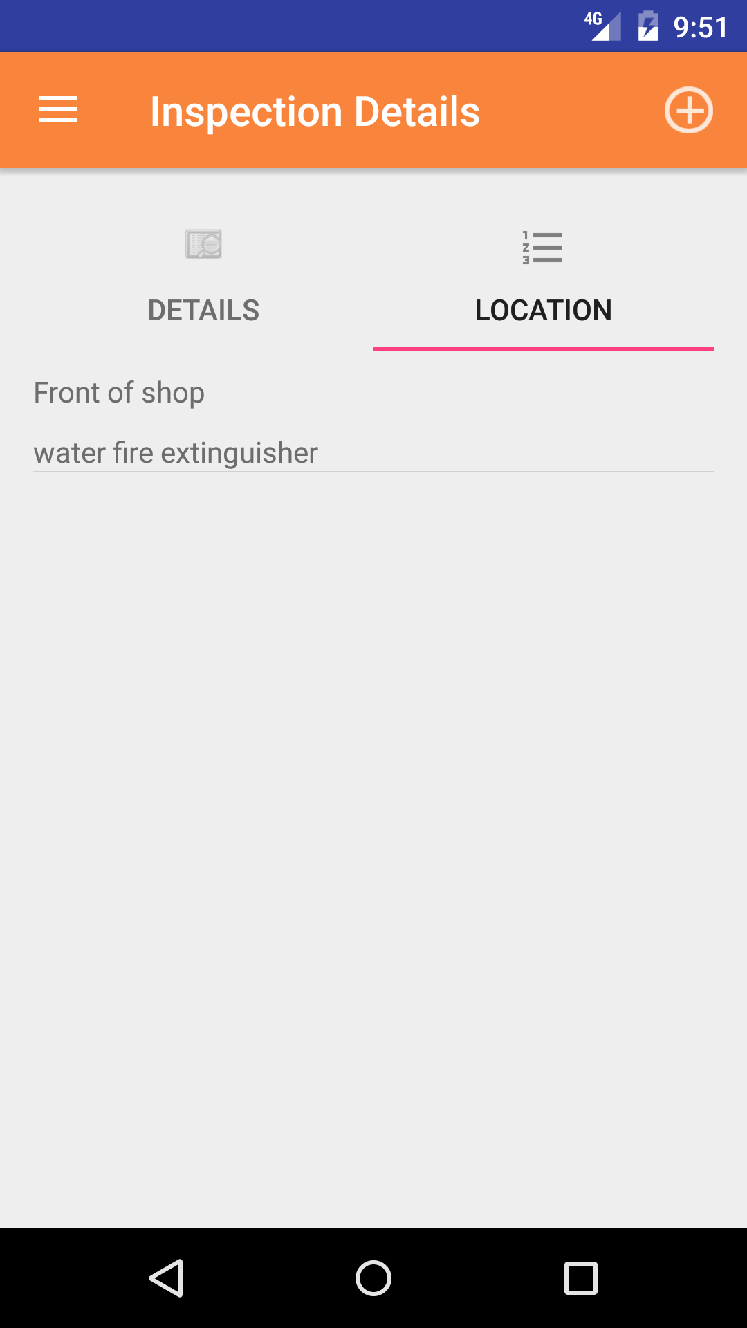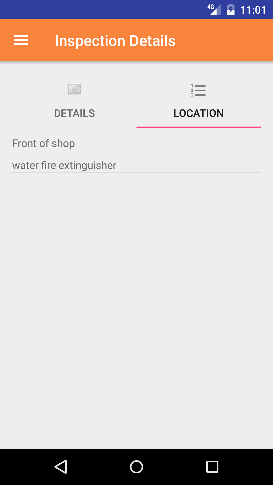 - Tap the second tab, the Fire Extinguisher Inspection Location lists the fire extinguisher locations on the fire extinguisher inspection.