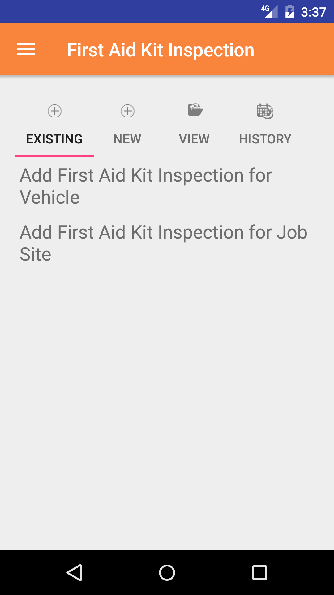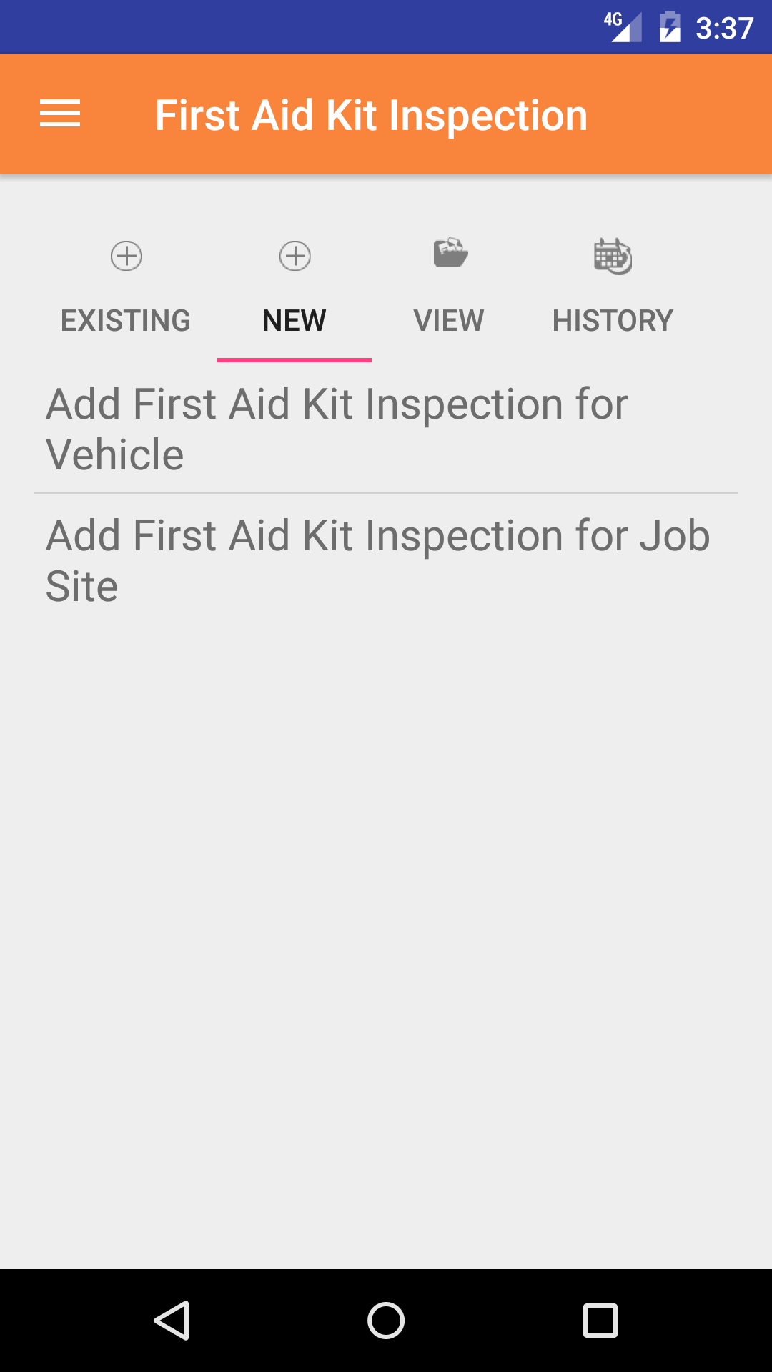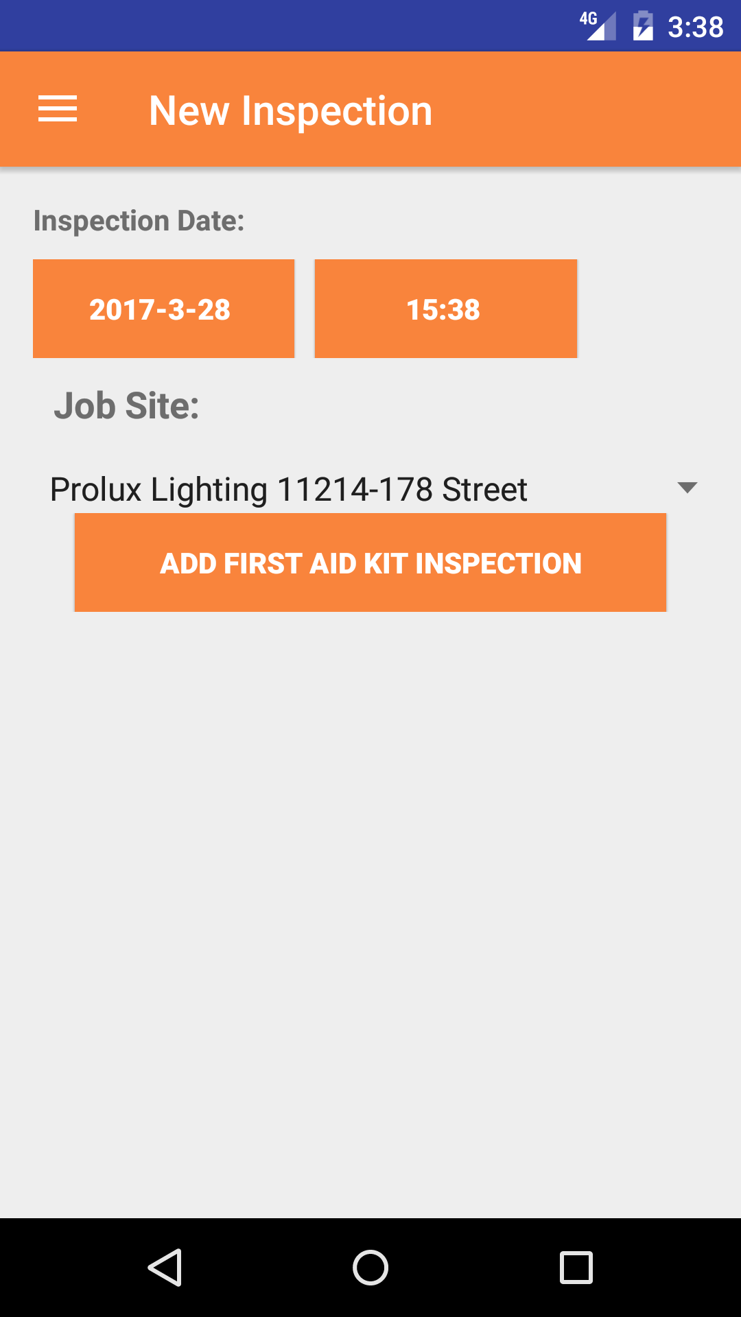 - Then tap on the First Aid Kit Inspection button, this opens the Add First Aid Kit Inspection from existing tab.