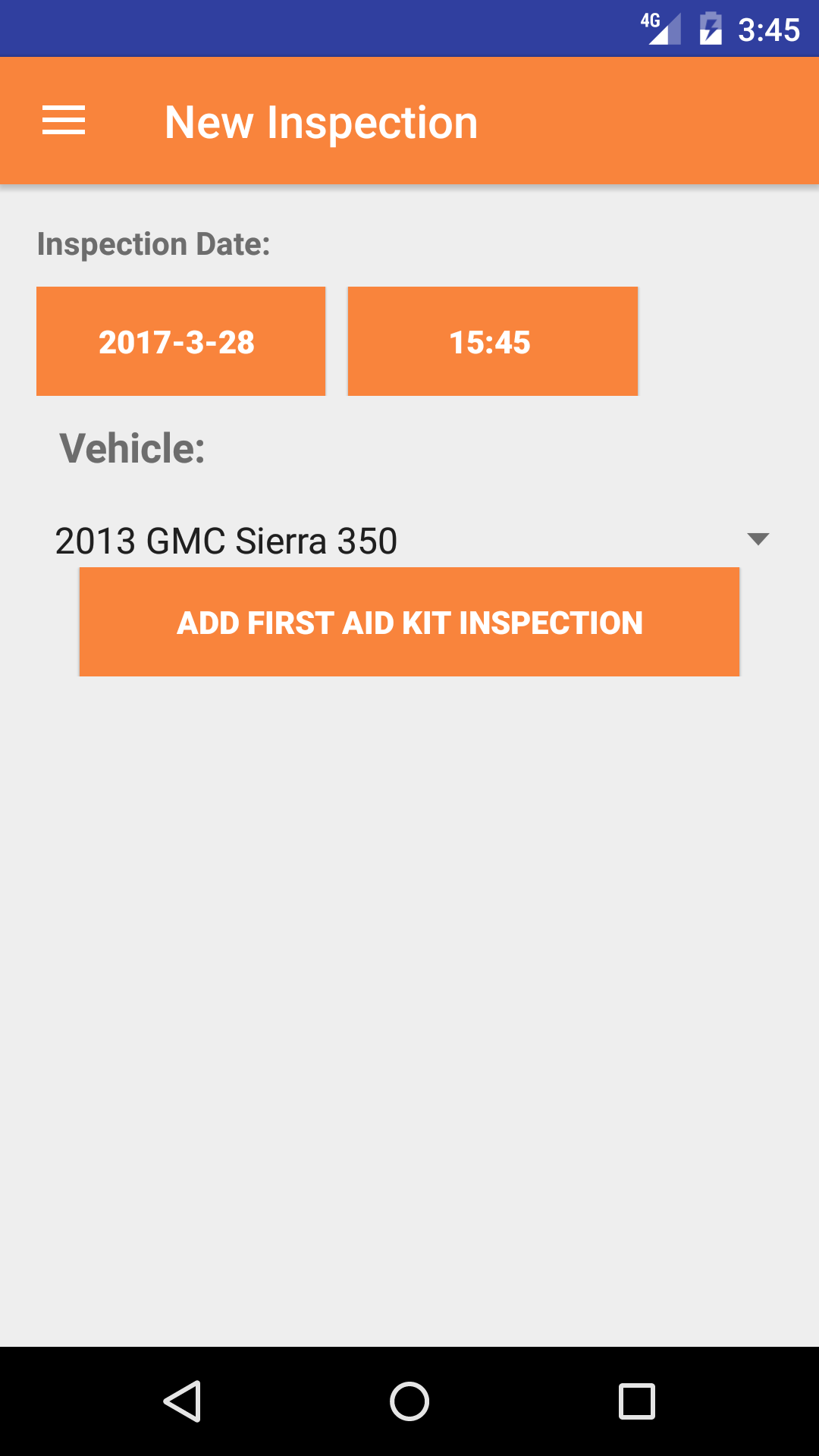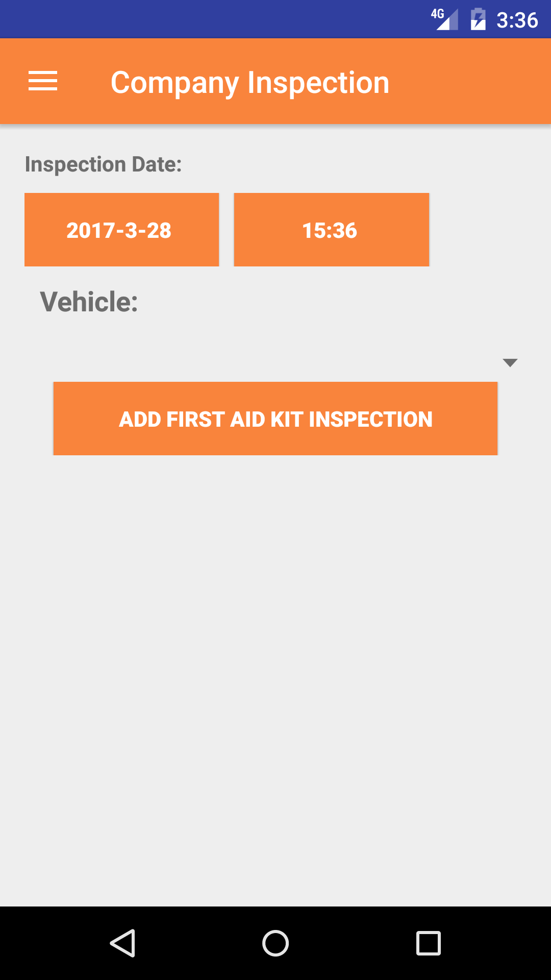 - This opens the Add First Aid Kit Inspection For Vehicle entry screen.