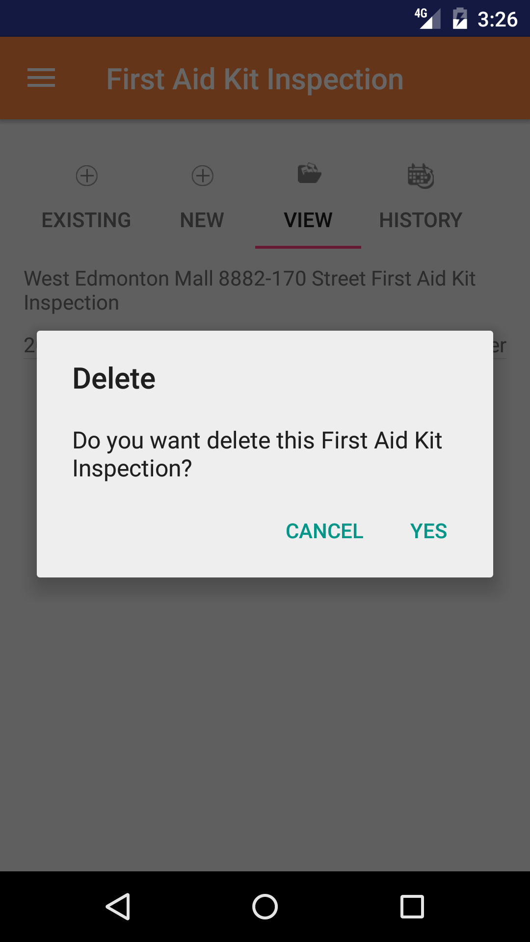 - Long Tap the first aid kit inspection to bring up the delete screen for the first aid kit inspection.
