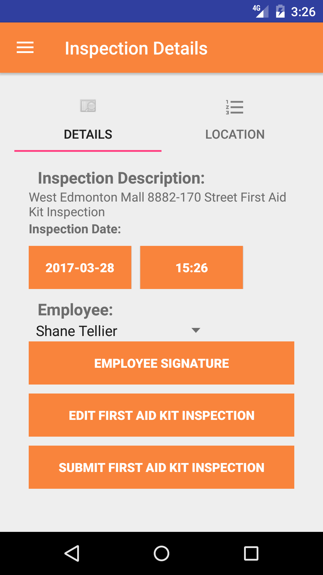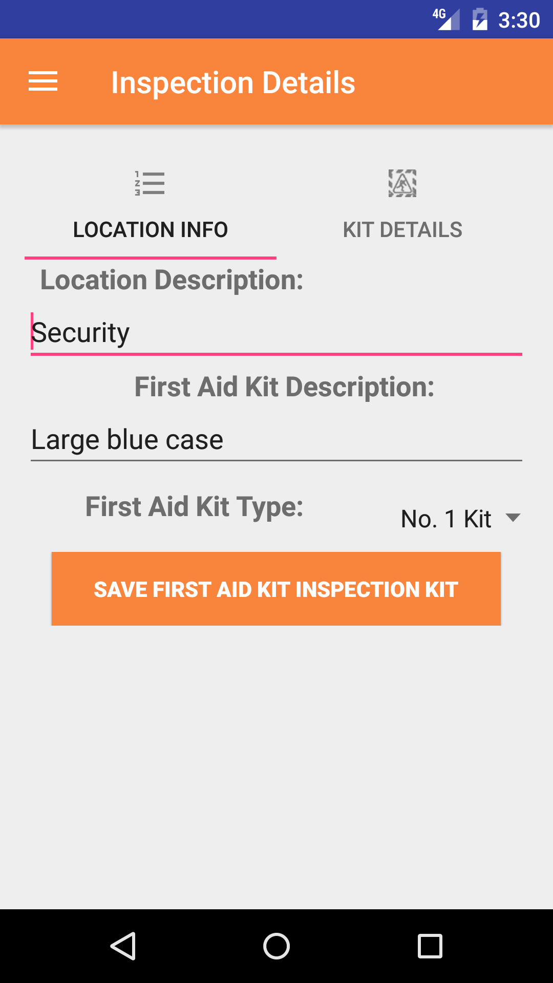 - Tap the second tab, the First Aid Kit Inspection Location lists the first aid kit locations on the first aid kit inspection. Tap on a location