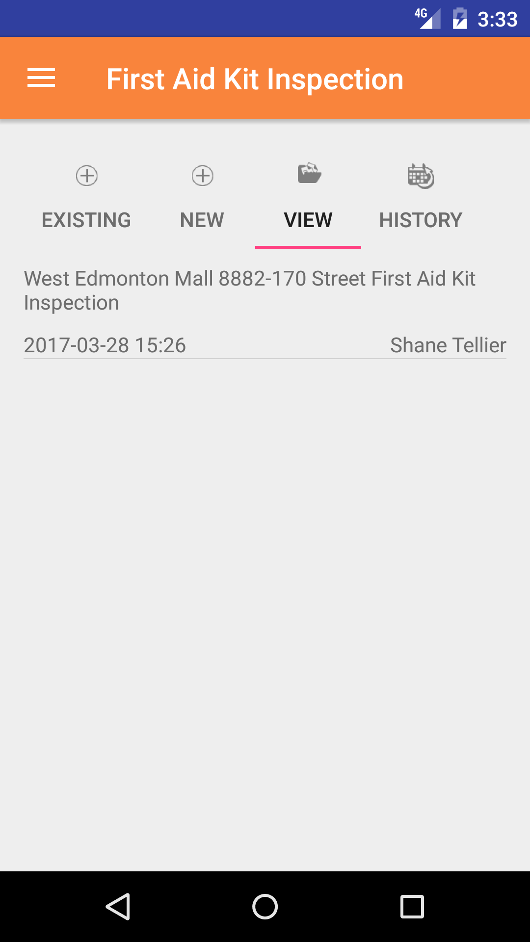 - Scroll the list of First Aid Kit Inspections until the desired First Aid Kit Inspection is displayed on the screen.