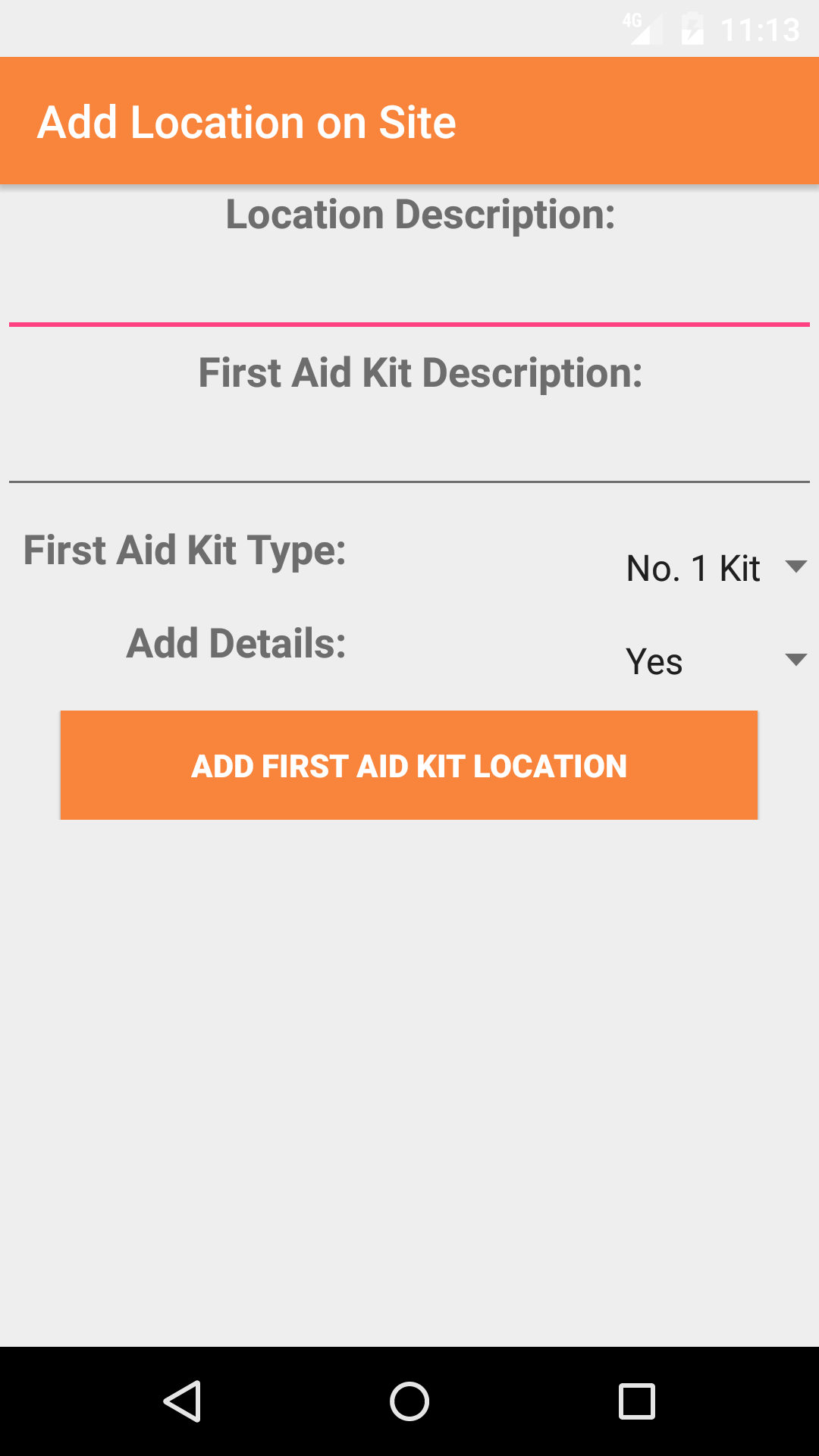 - Tap the Add button on the top right corner, this loads the add first aid kit location screen.