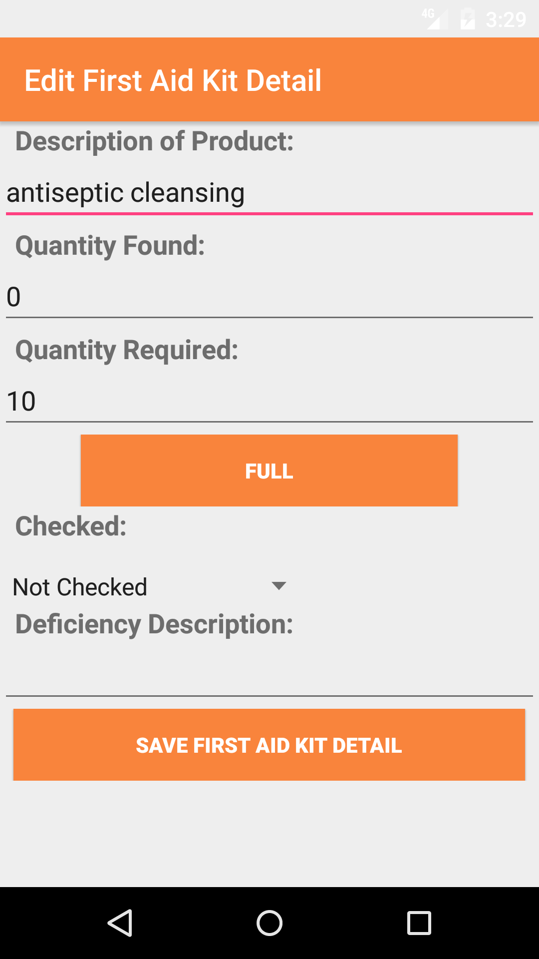 - Tap on the desired detail. This loads the edit First Aid Kit Detail screen.
